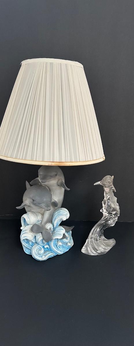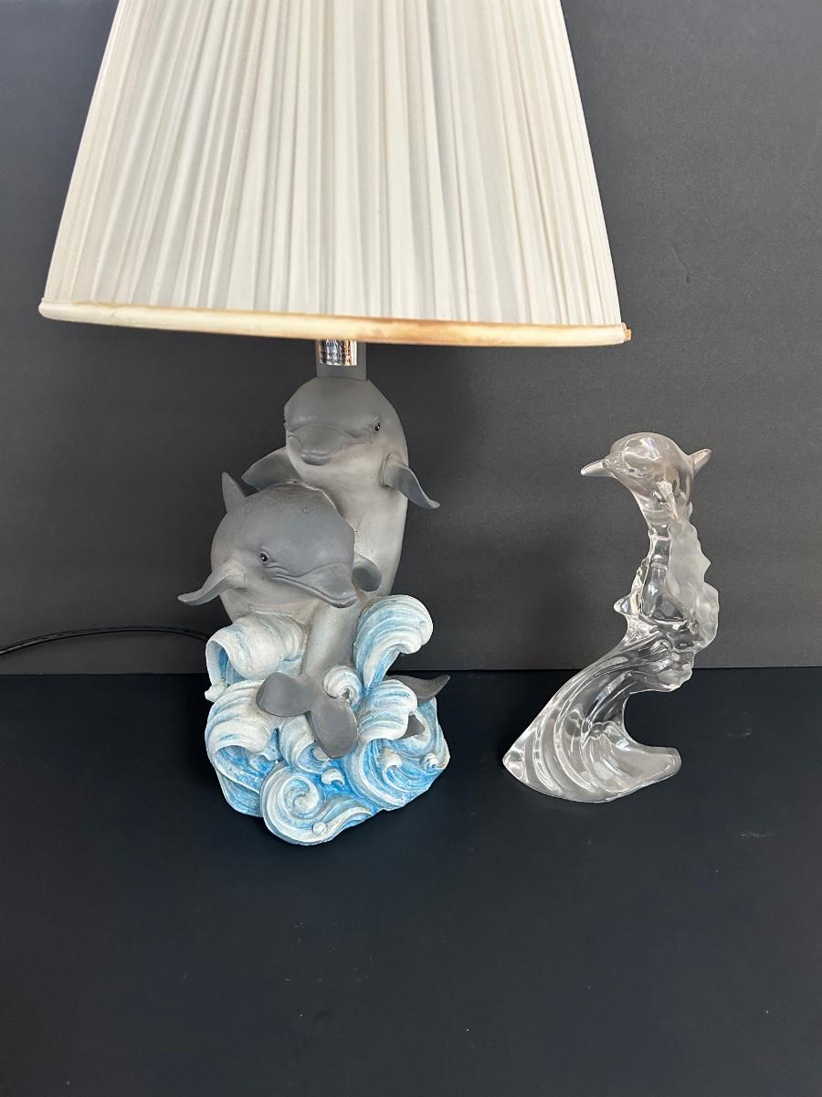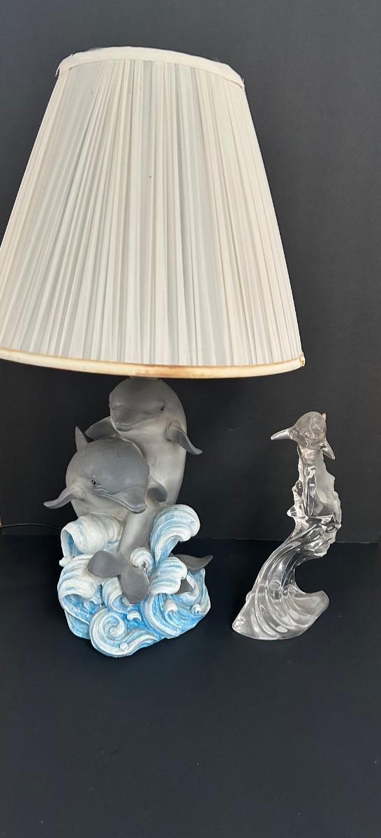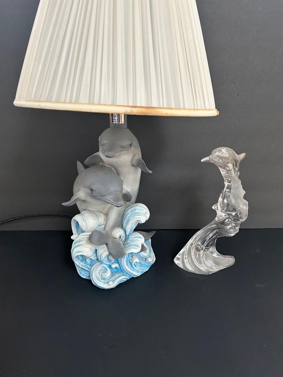 LOT 180S: Dolphin Lamp And Lenox 12" Crystal Sculpture