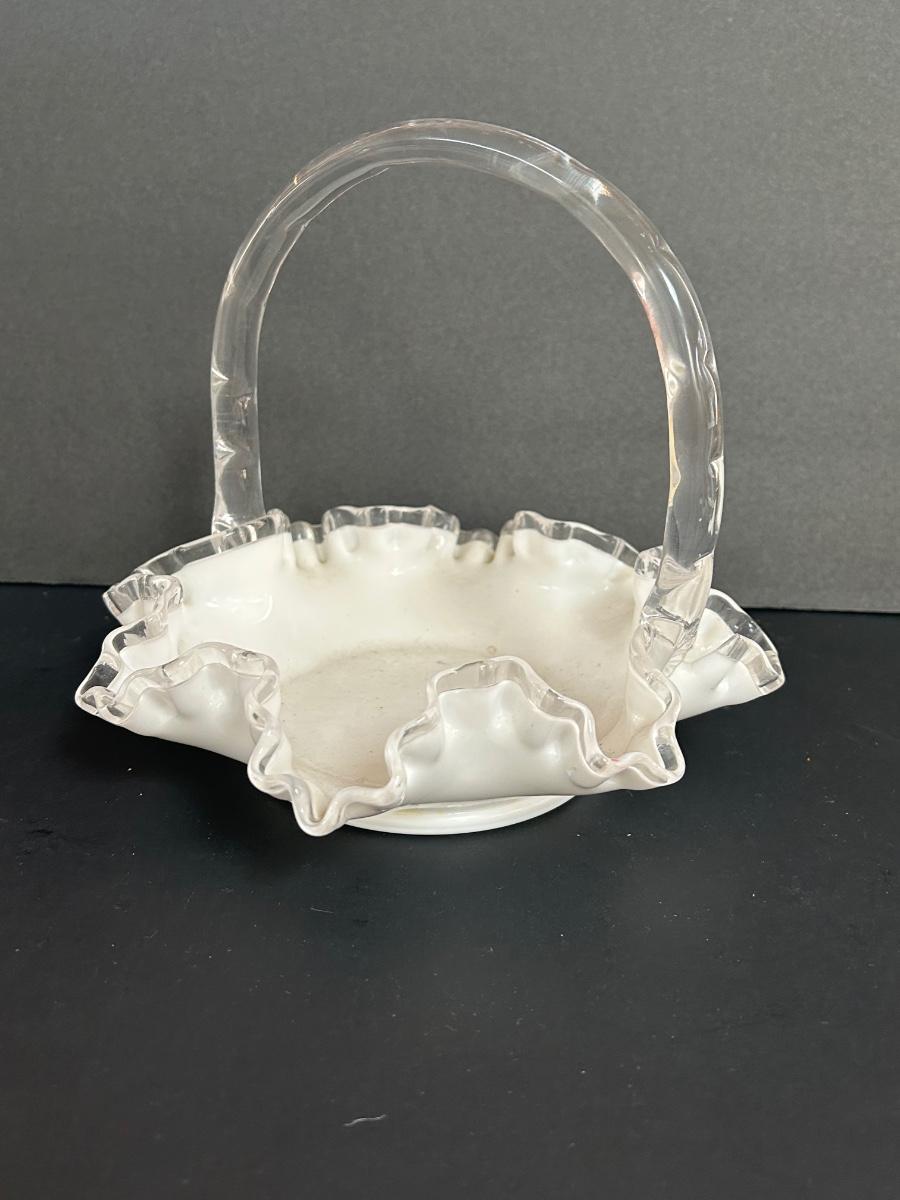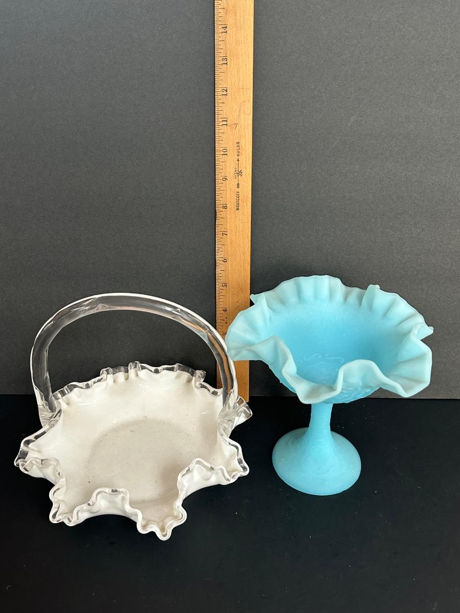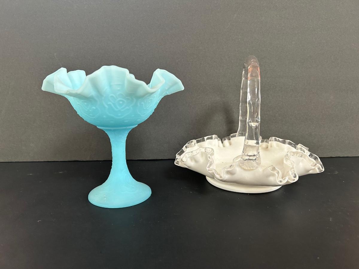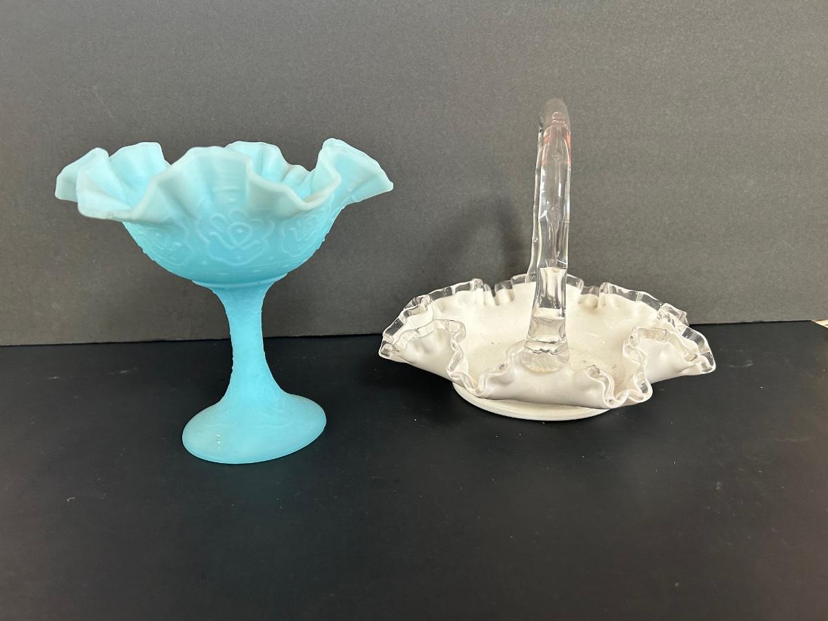LOT 185S: Fenton Glass - Blue Fenton Dish And White/ Clear Fenton Basket