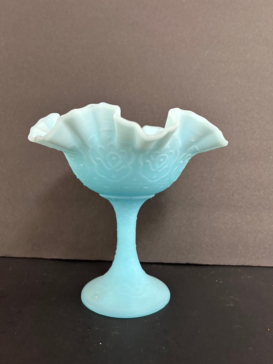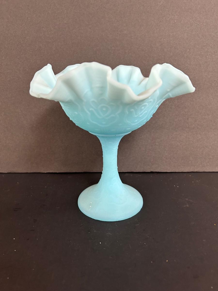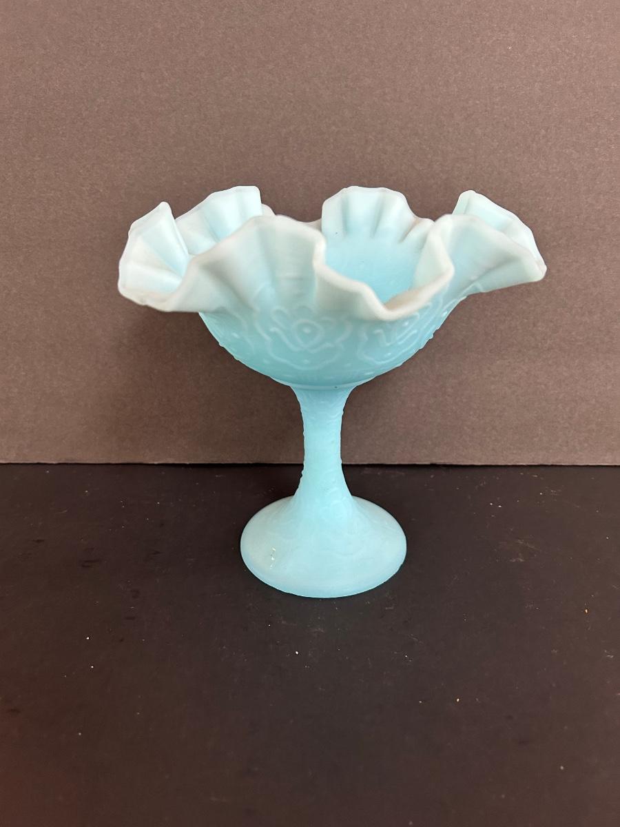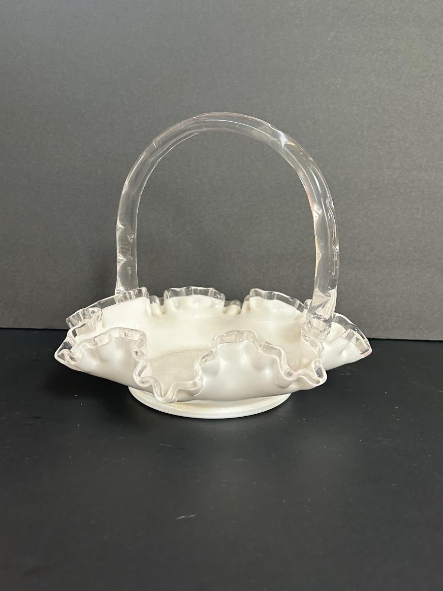 LOT 185S: Fenton Glass - Blue Fenton Dish And White/ Clear Fenton Basket