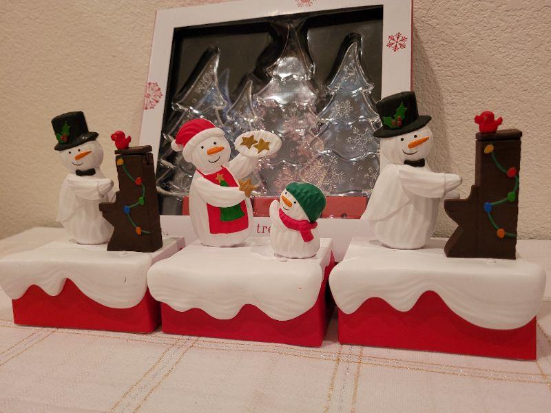 Lot 998: (3) Hallmark Synchronized Christmas Dancing Snowmen + Backlit Tree Set TESTED A+