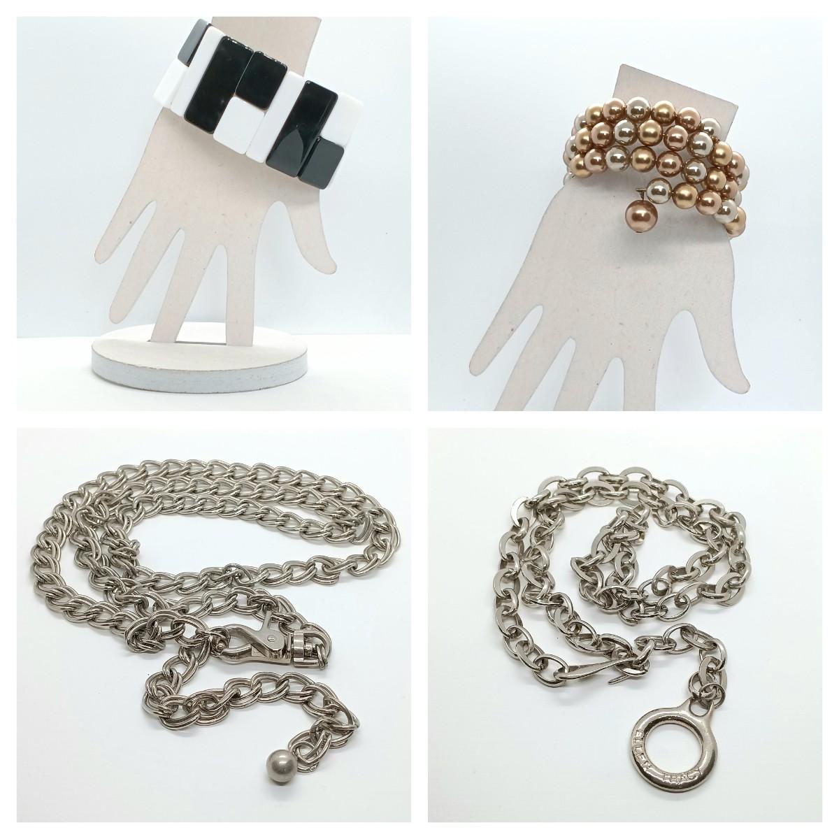 LOT 32: Vintage Statement Cuff w/ Beaded Bracelet and 2 Chain Belts