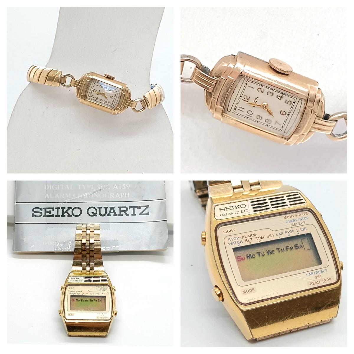 LOT 34: Vintage 10k Gold-Filled Ladies Elgin Watch and Vintage Seiko Digital Mens Watch