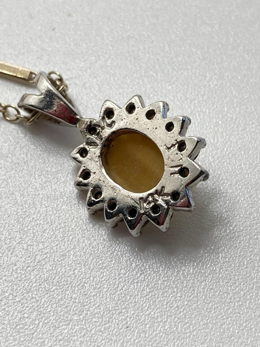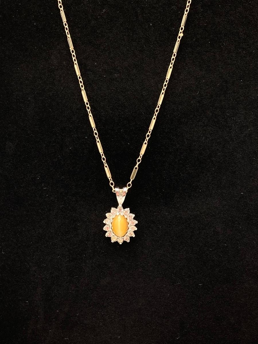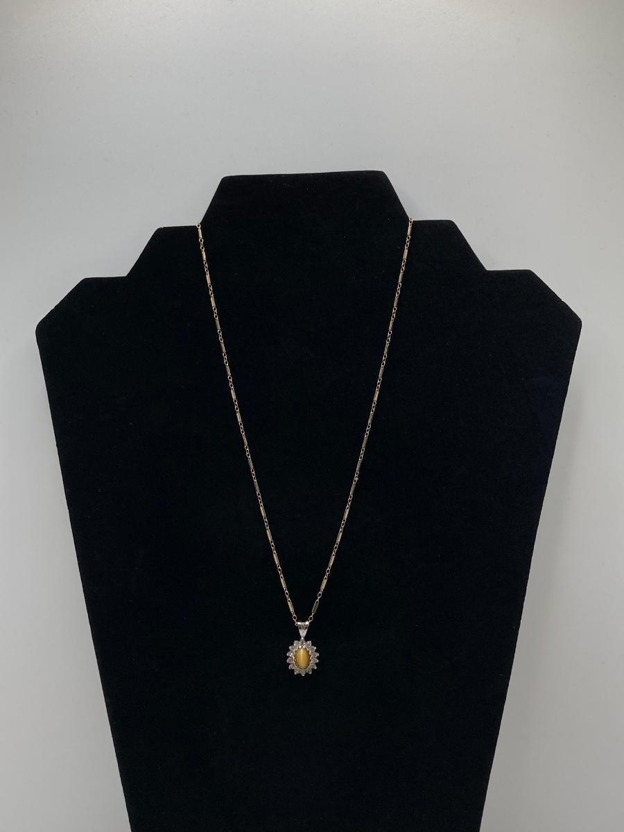 LOT 56J: Gold Cat's Eye Pendant Necklace with CZs - 14K., Tw 3.95g, 16"