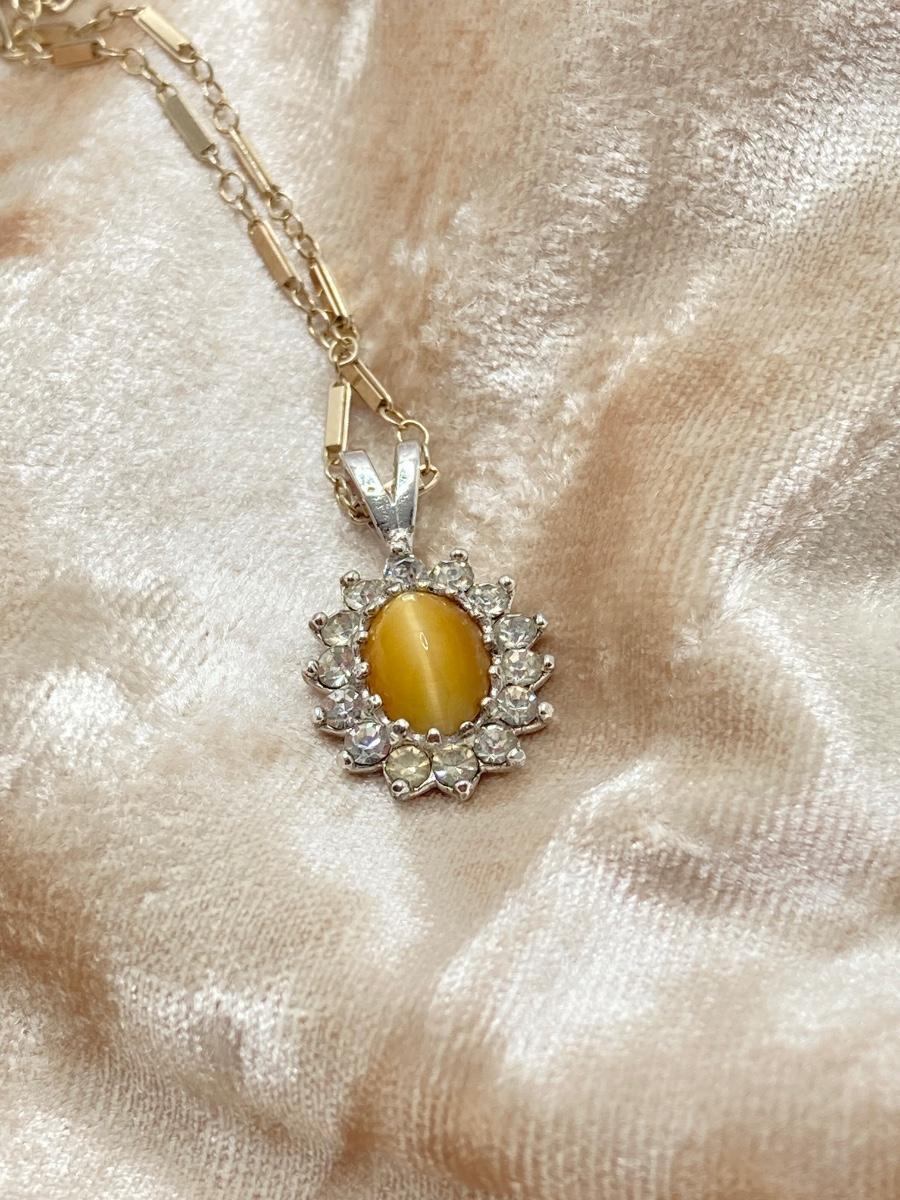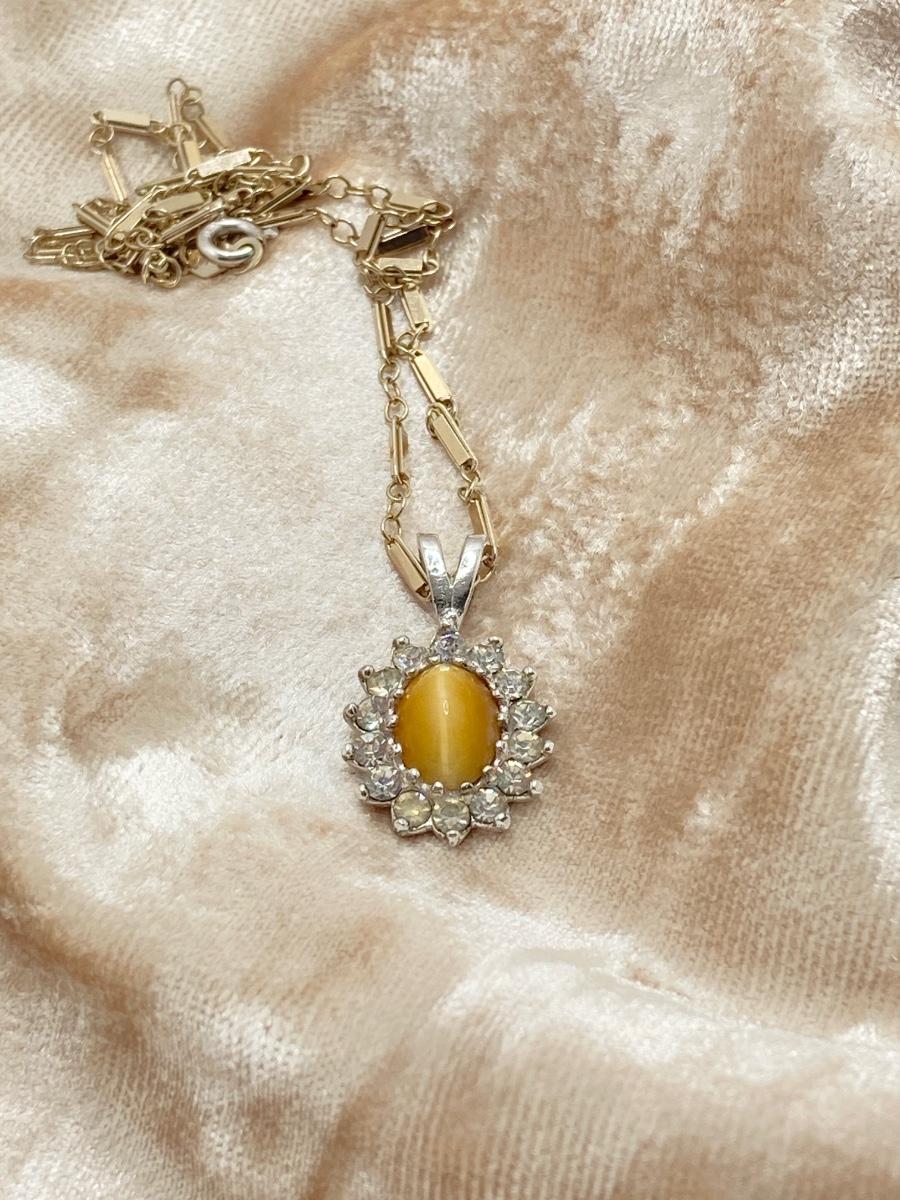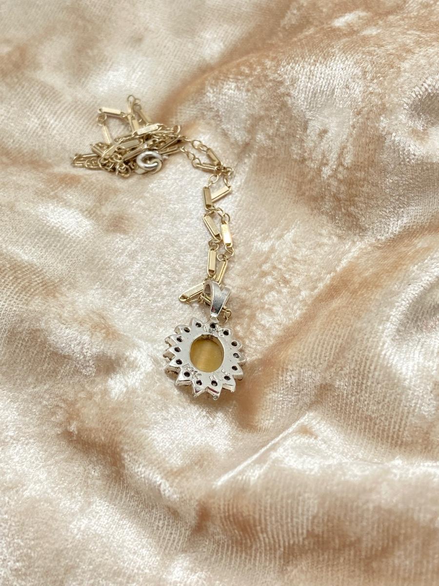 LOT 56J: Gold Cat's Eye Pendant Necklace with CZs - 14K., Tw 3.95g, 16"