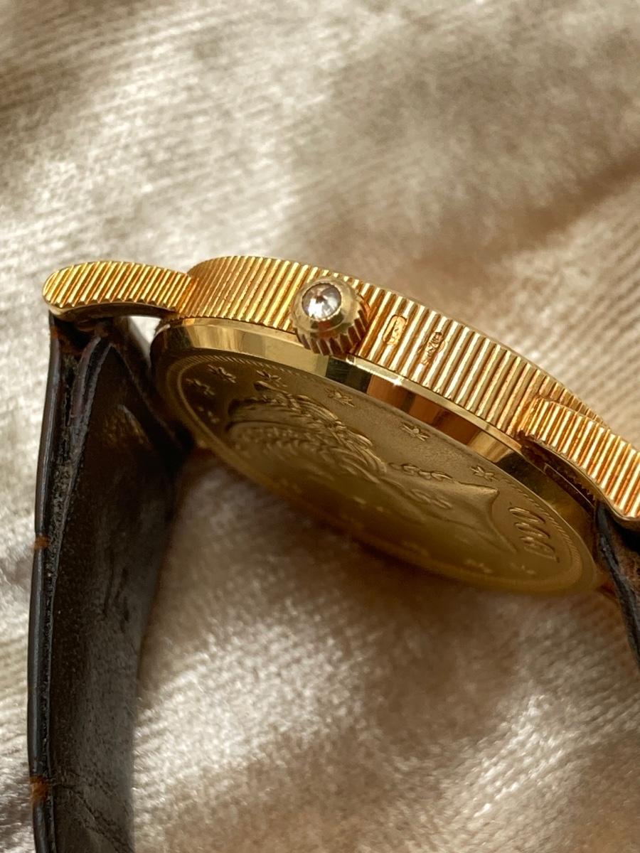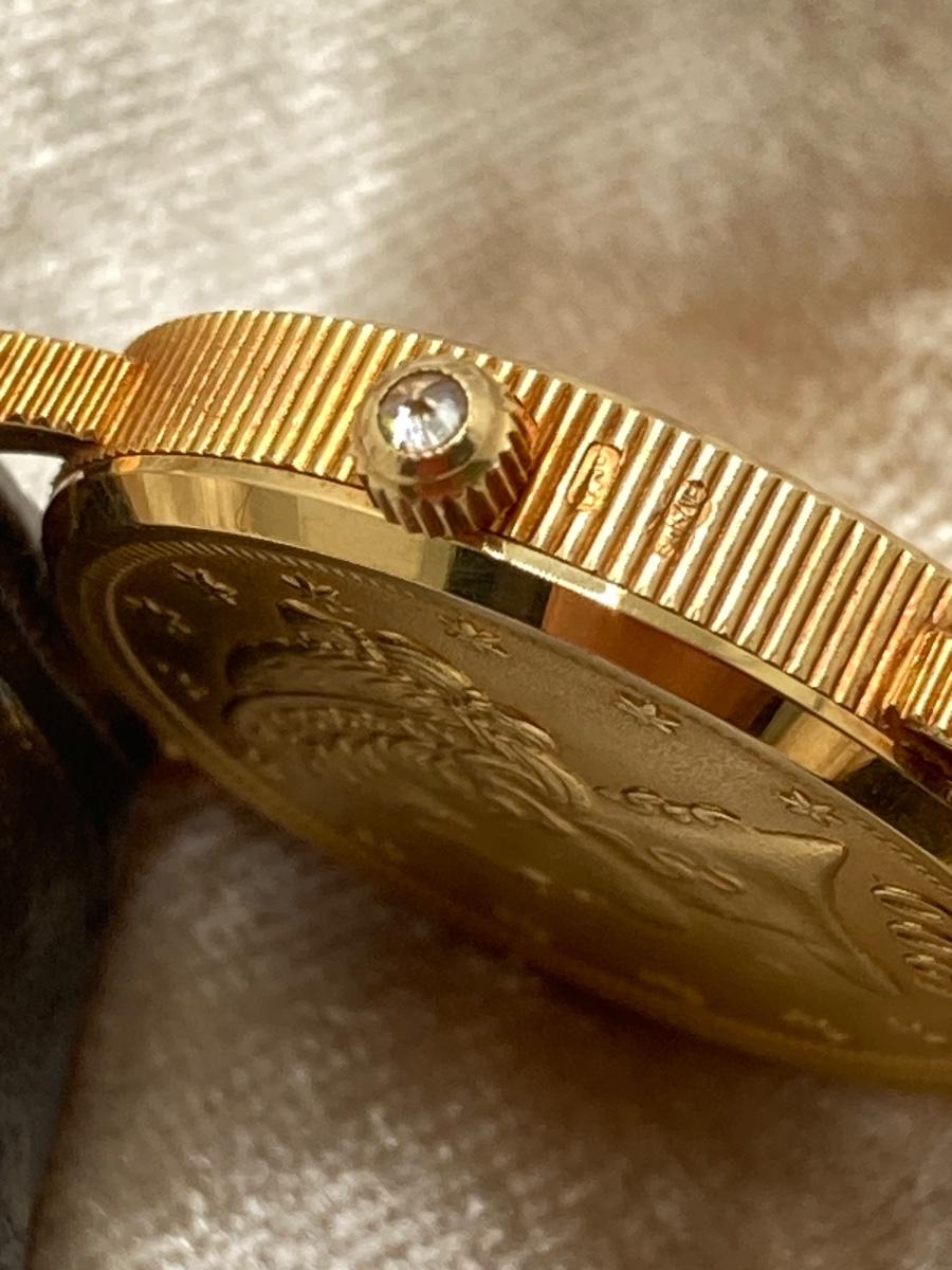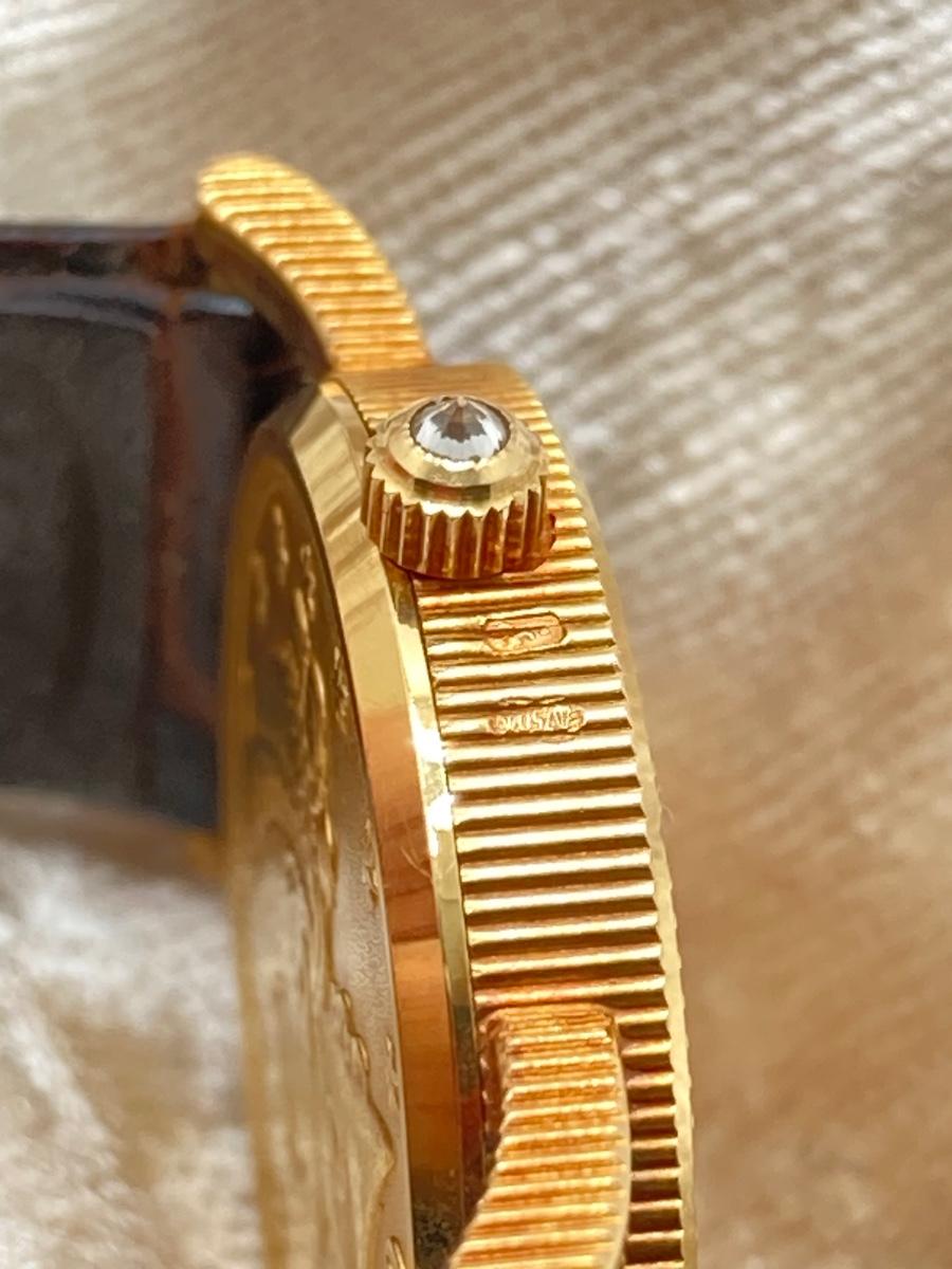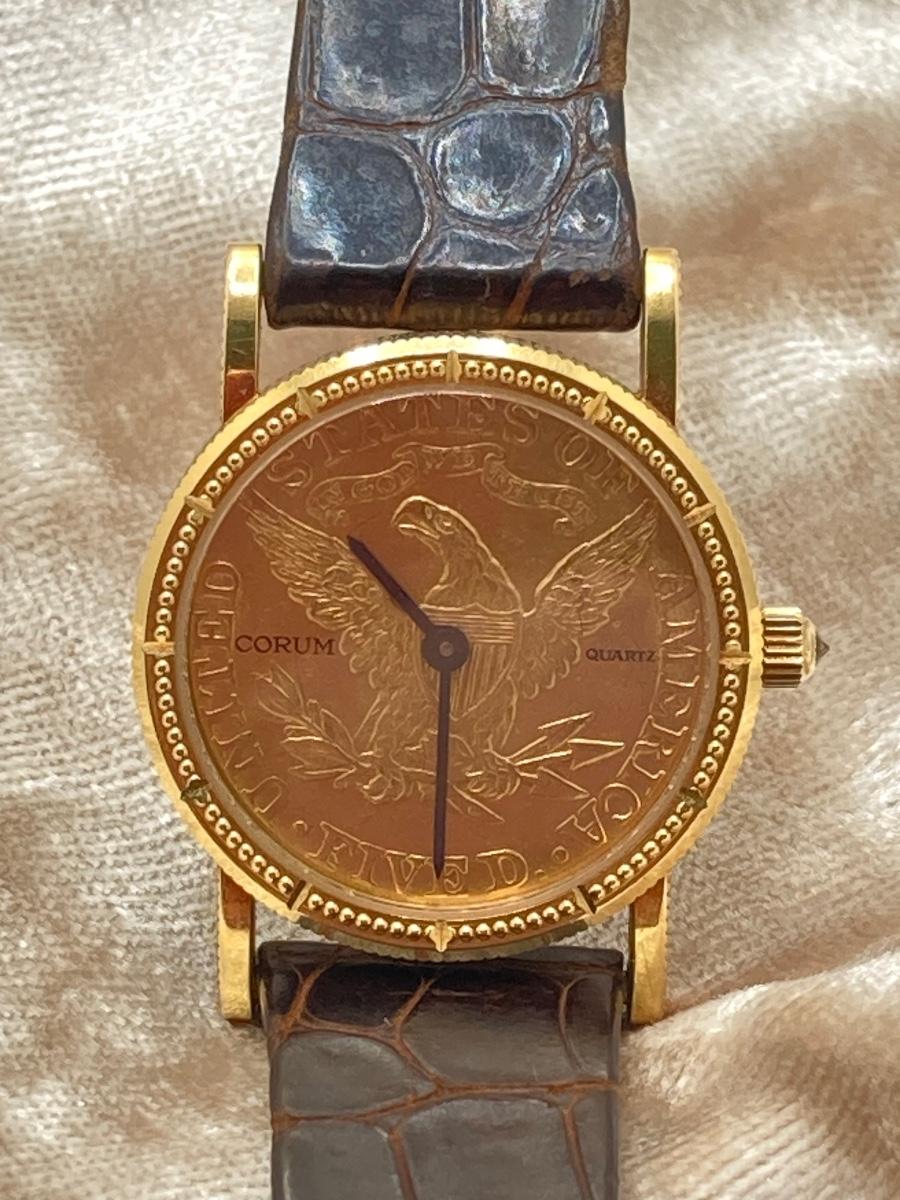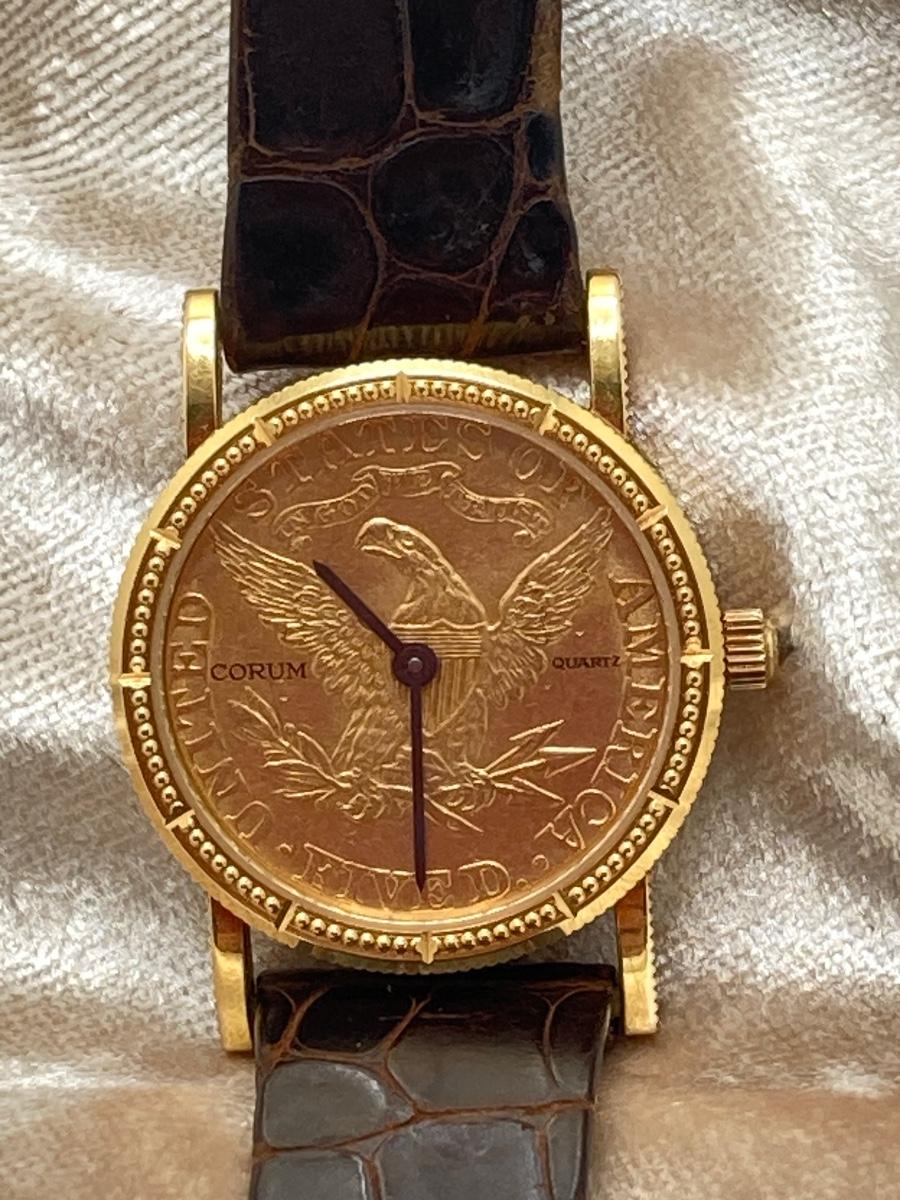 LOT 61J: Corum 18K Gold Five Dollar / 1900 Coin (2 Bodied) Swiss Watch with Diamond Crown and Leather Band