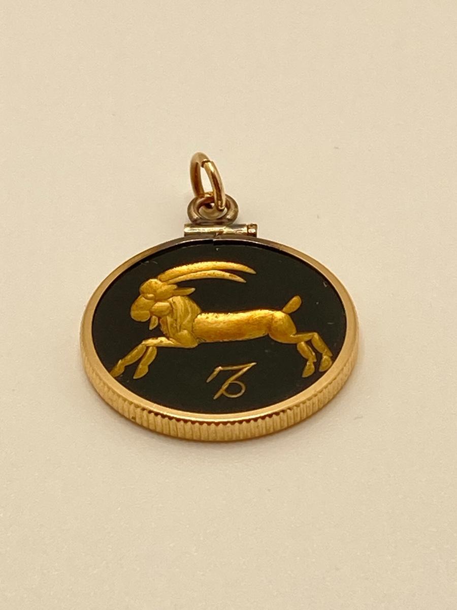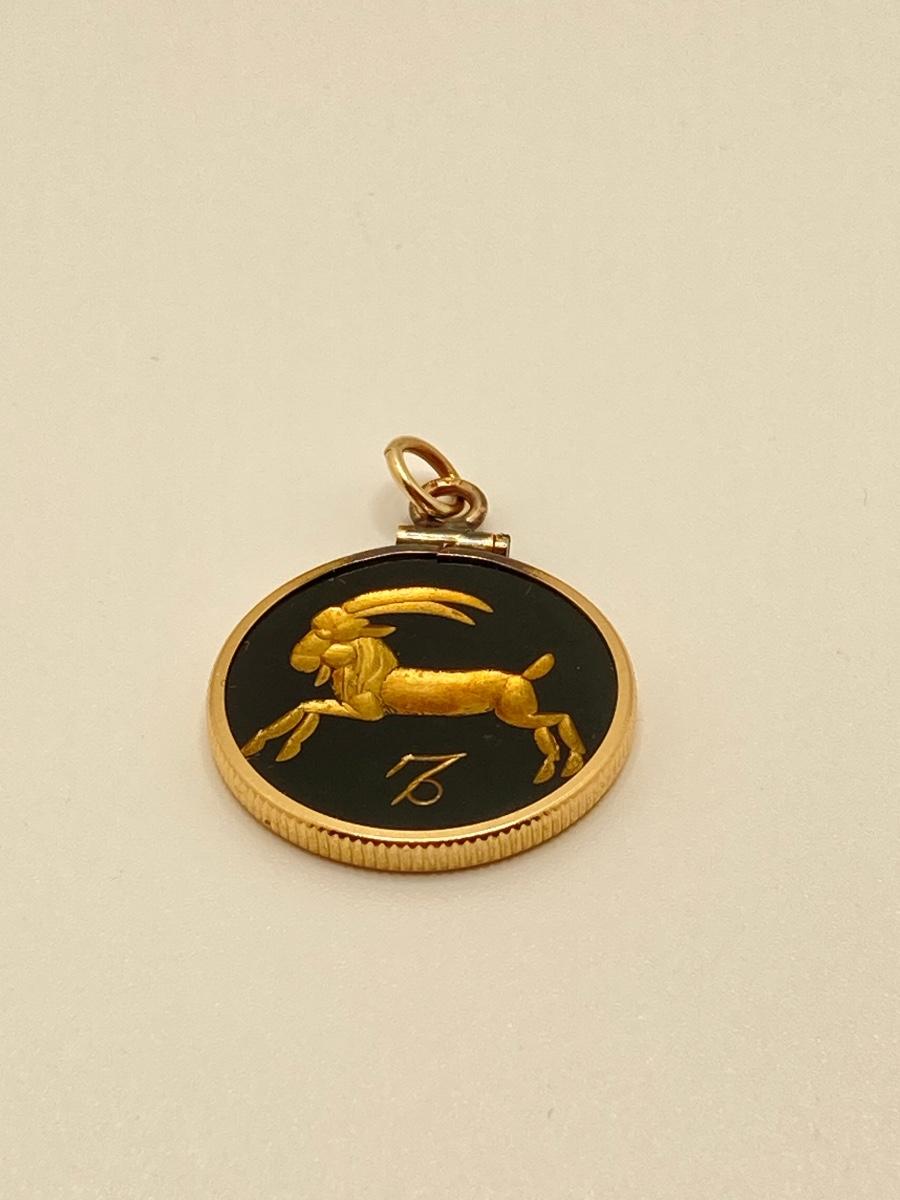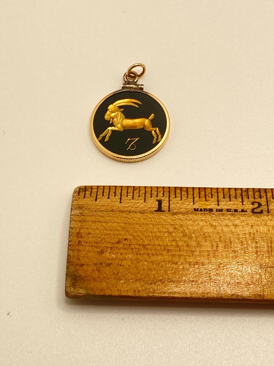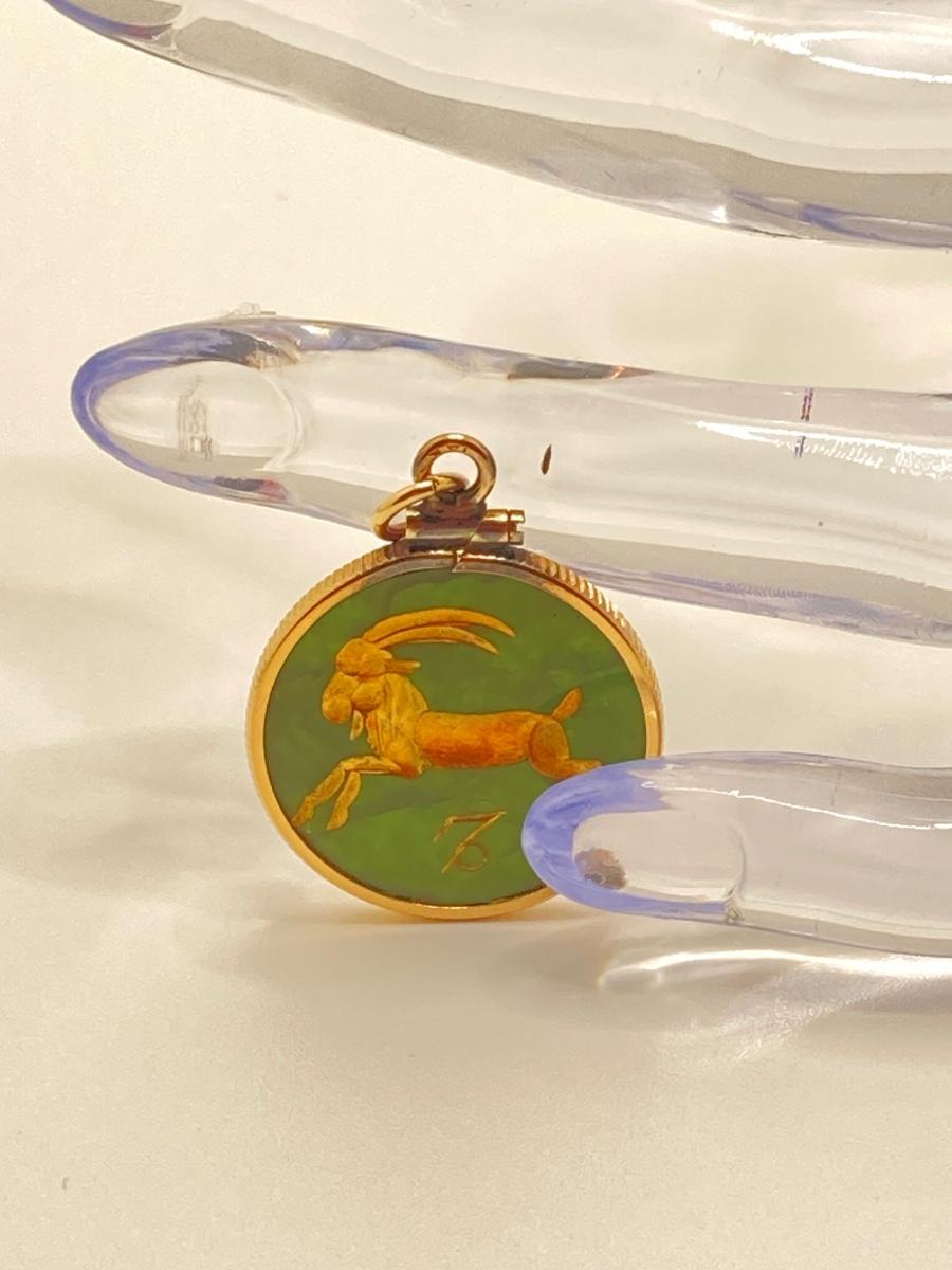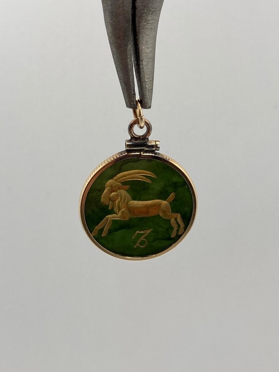 LOT 62J: Vintage Gold Carved Jade Capricorn Pendant - 14K., Tw 3.13g