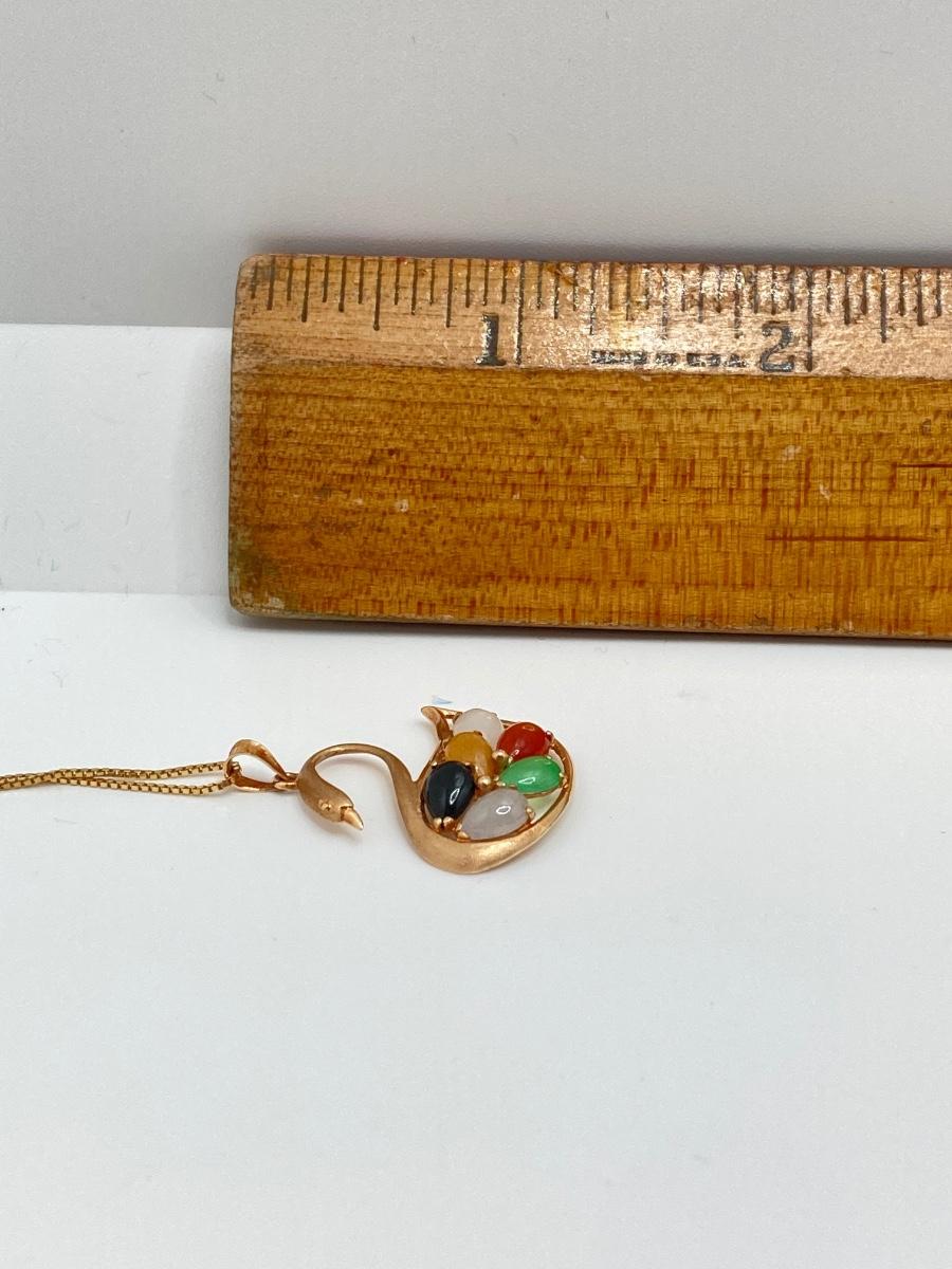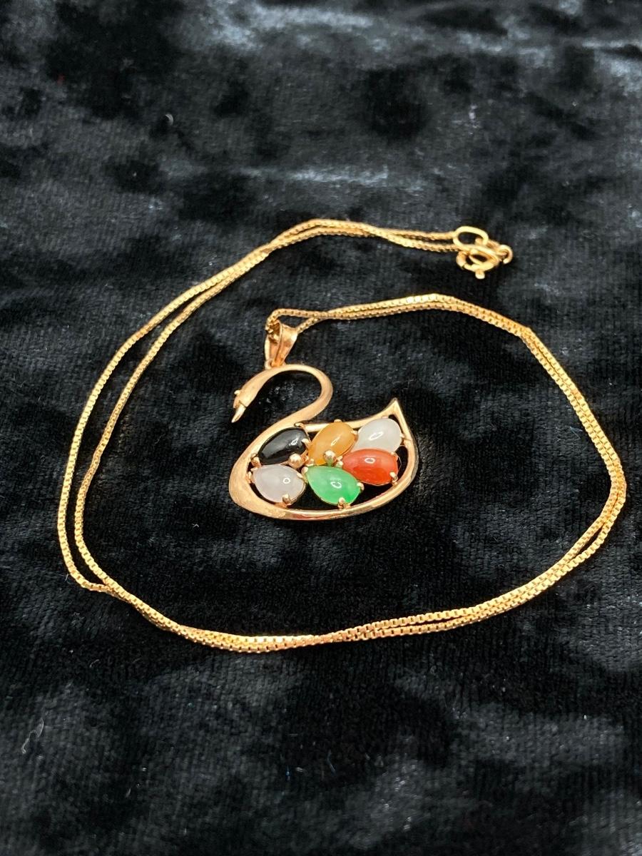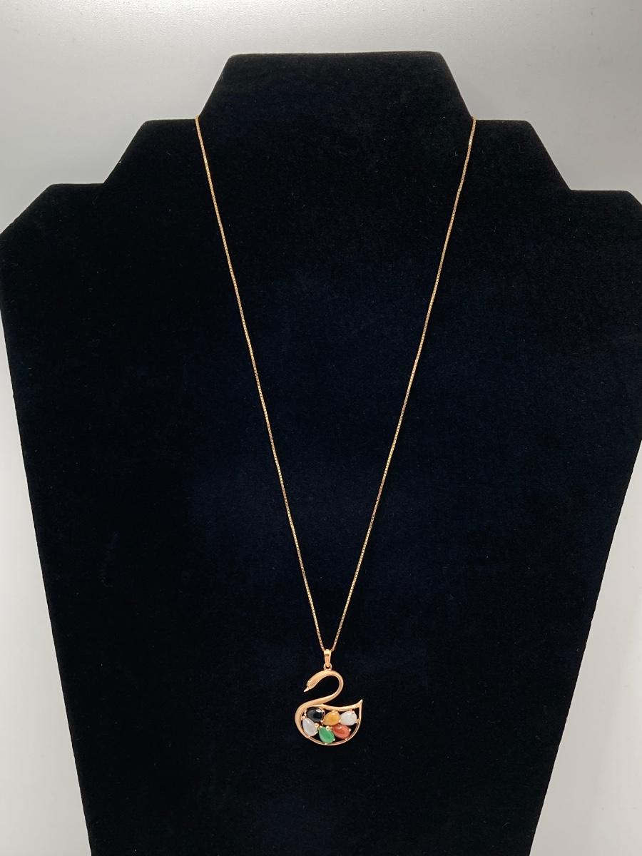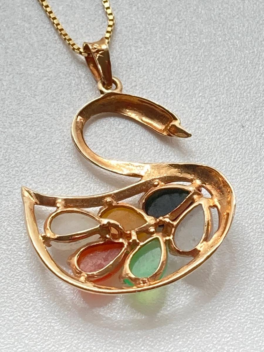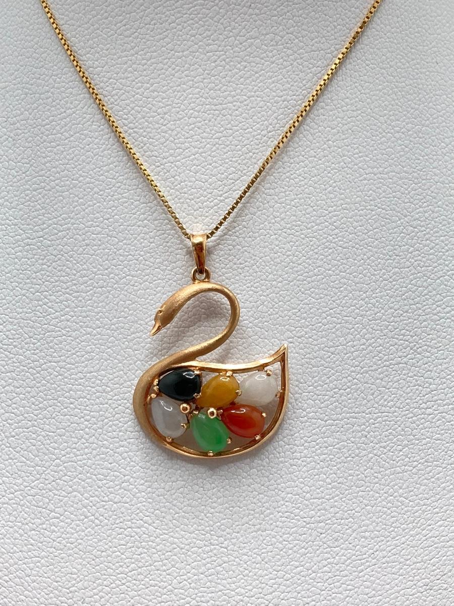 LOT 69J: Multi-Color Jade MK CI Italy Gold Swan Pendant Necklace - 14K., Tw 3.07g, 16"