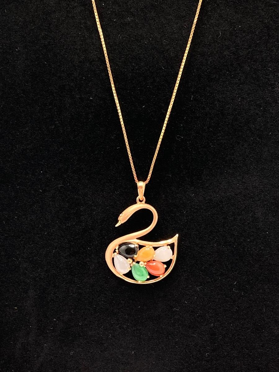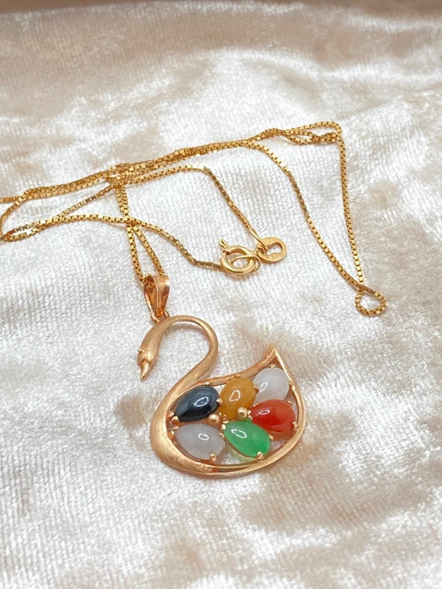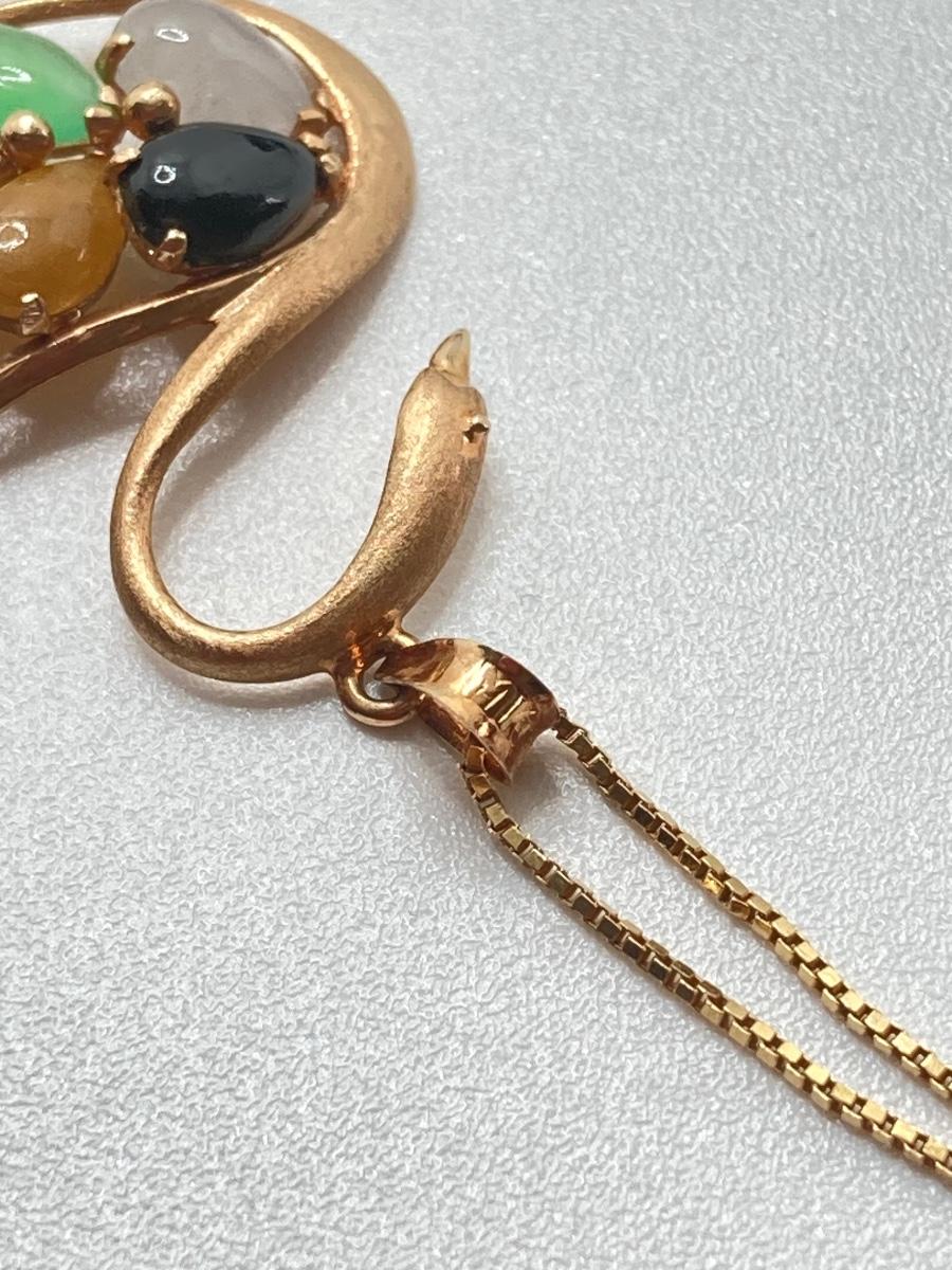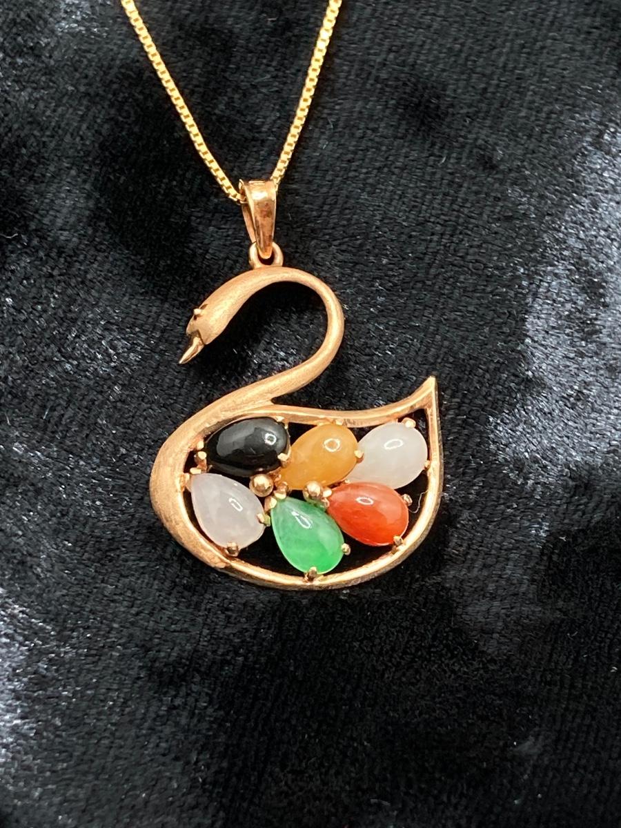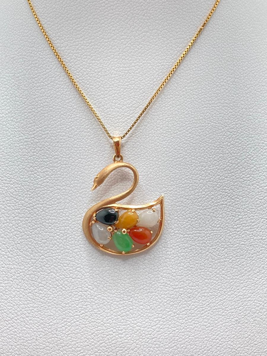 LOT 69J: Multi-Color Jade MK CI Italy Gold Swan Pendant Necklace - 14K., Tw 3.07g, 16"