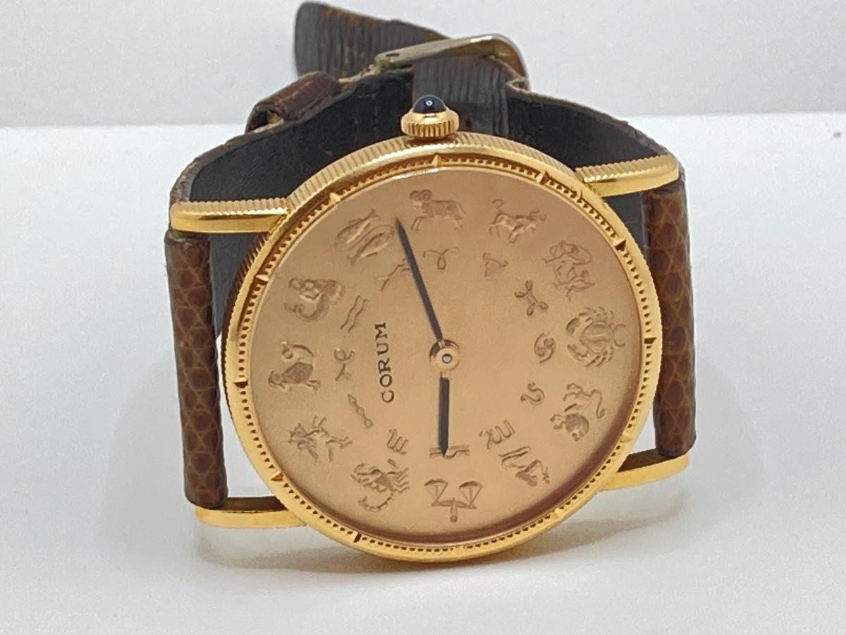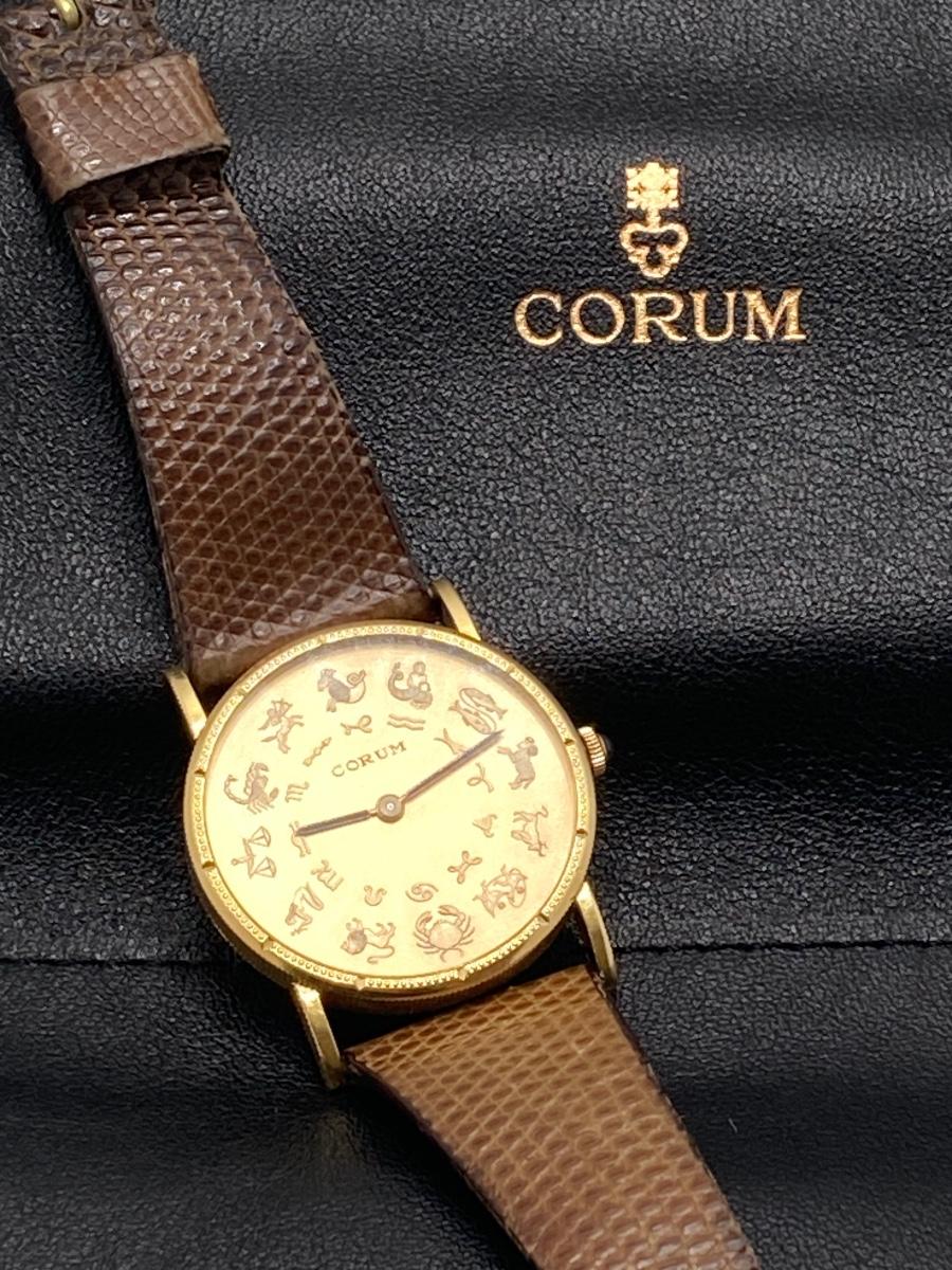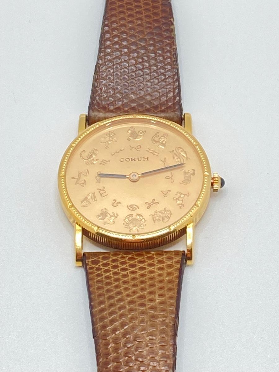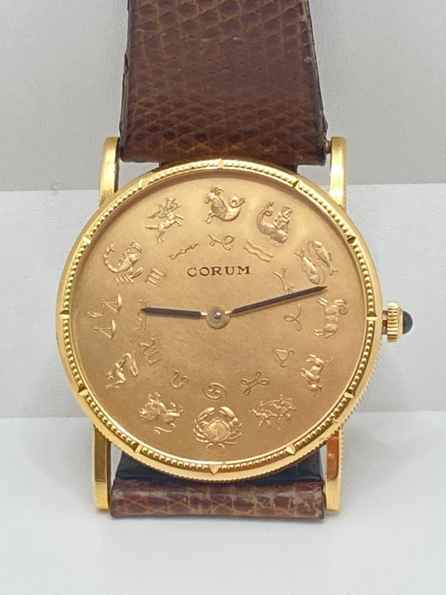 LOT 75J: Authentic 18k Corum Swiss Astrological Zodiac Gold Watch with Sapphire Crown in Original Box w COA