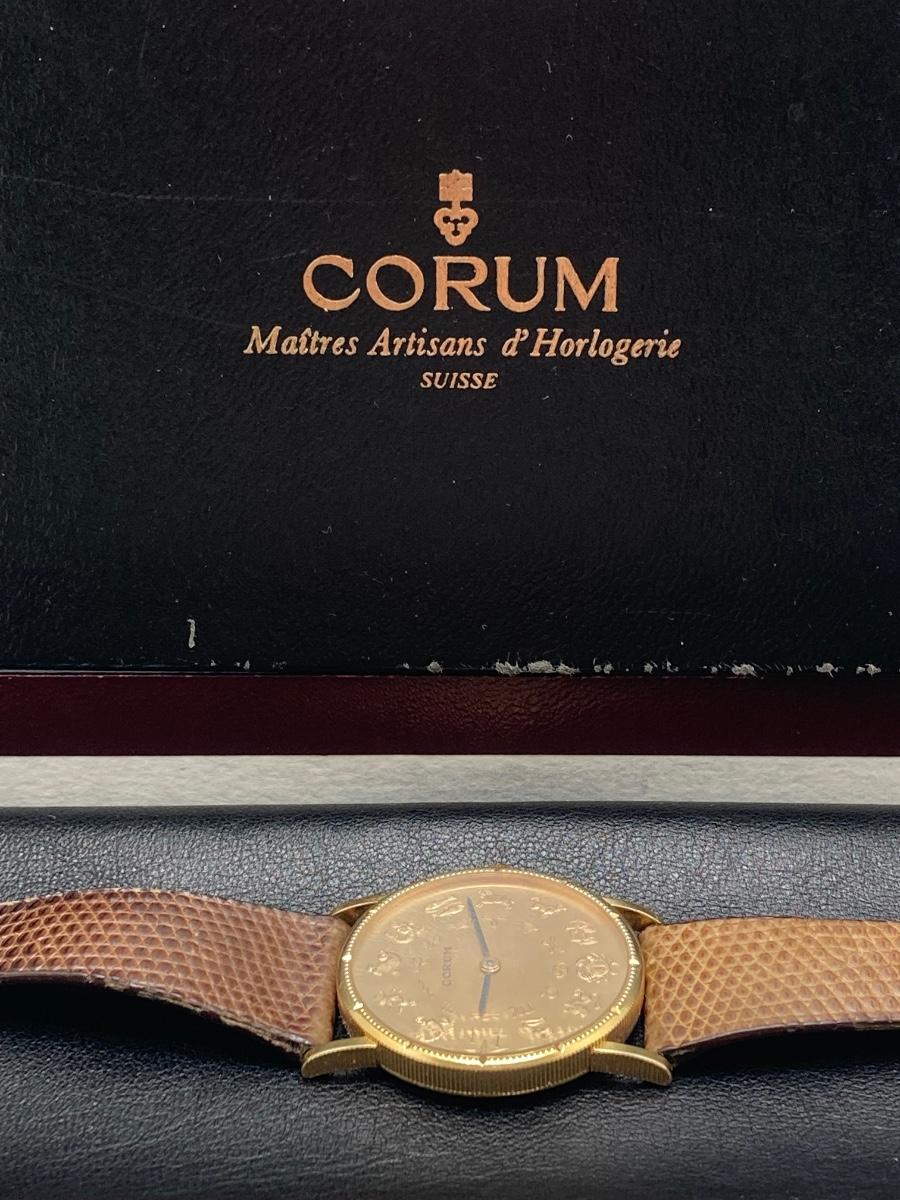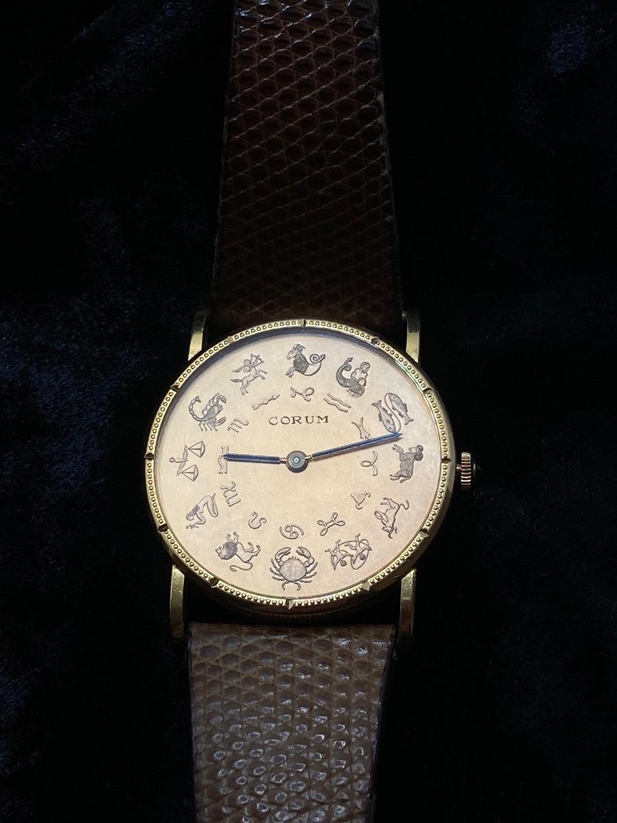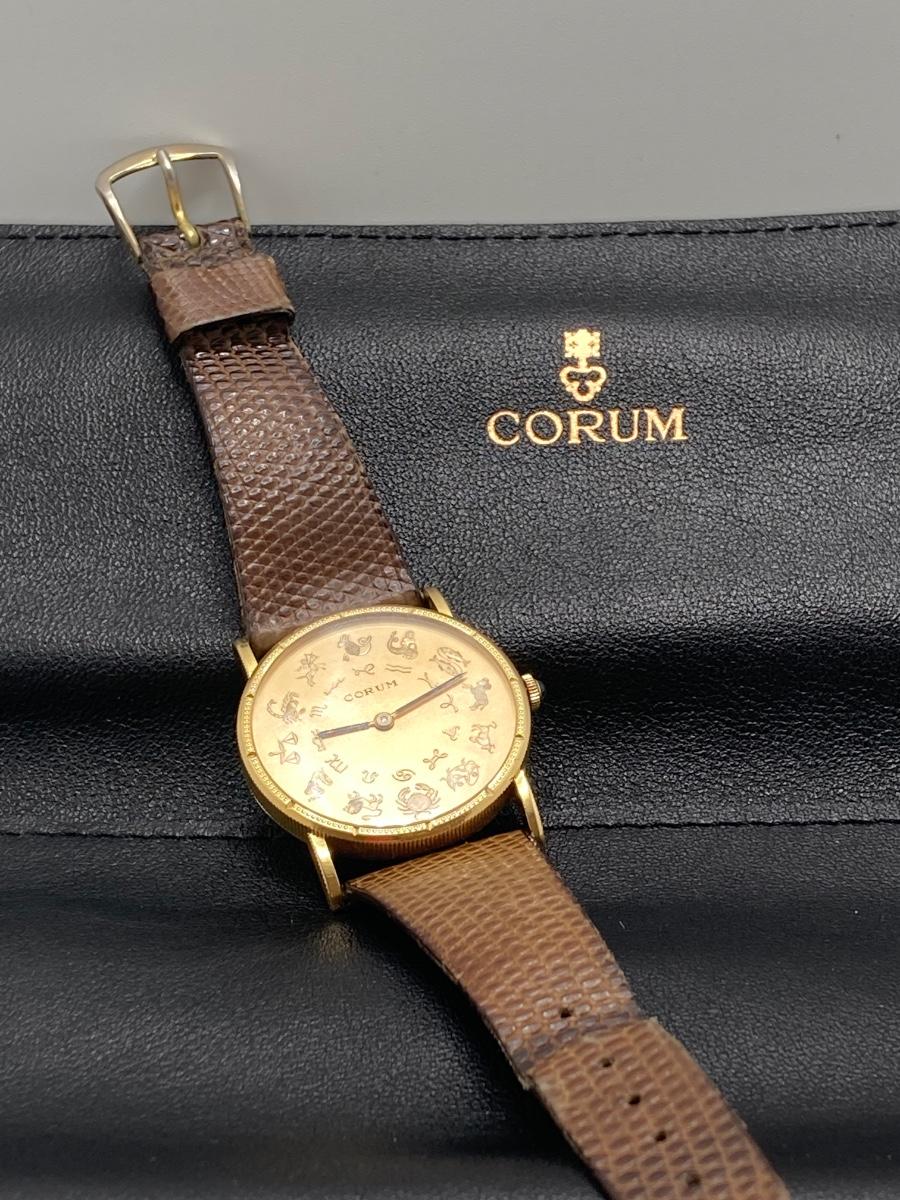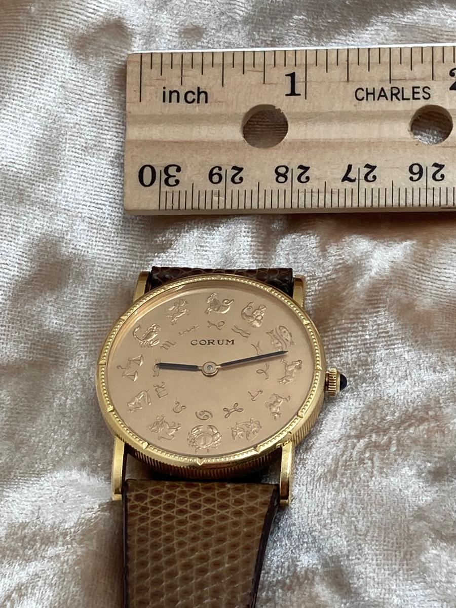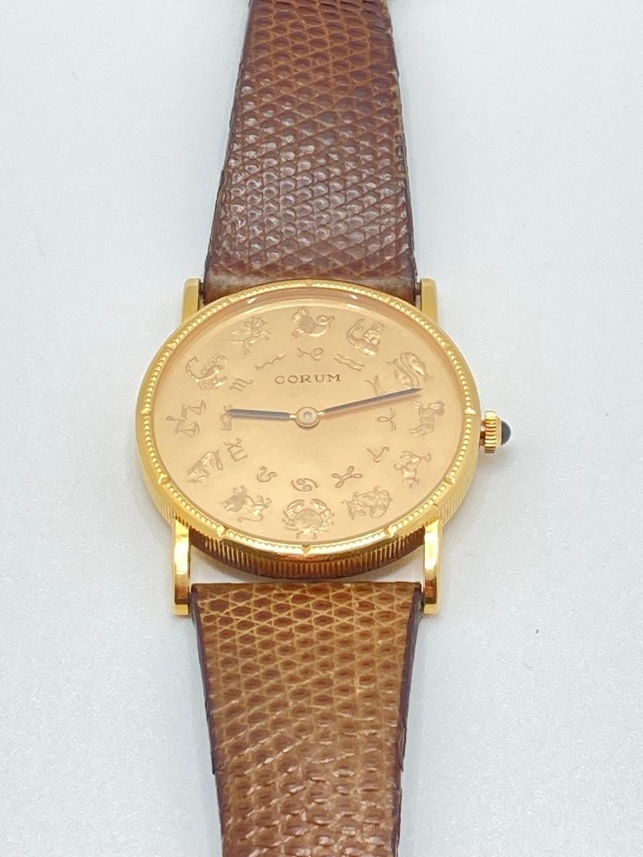 LOT 75J: Authentic 18k Corum Swiss Astrological Zodiac Gold Watch with Sapphire Crown in Original Box w COA