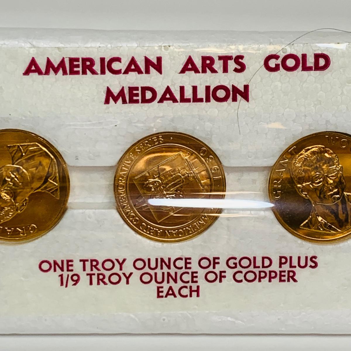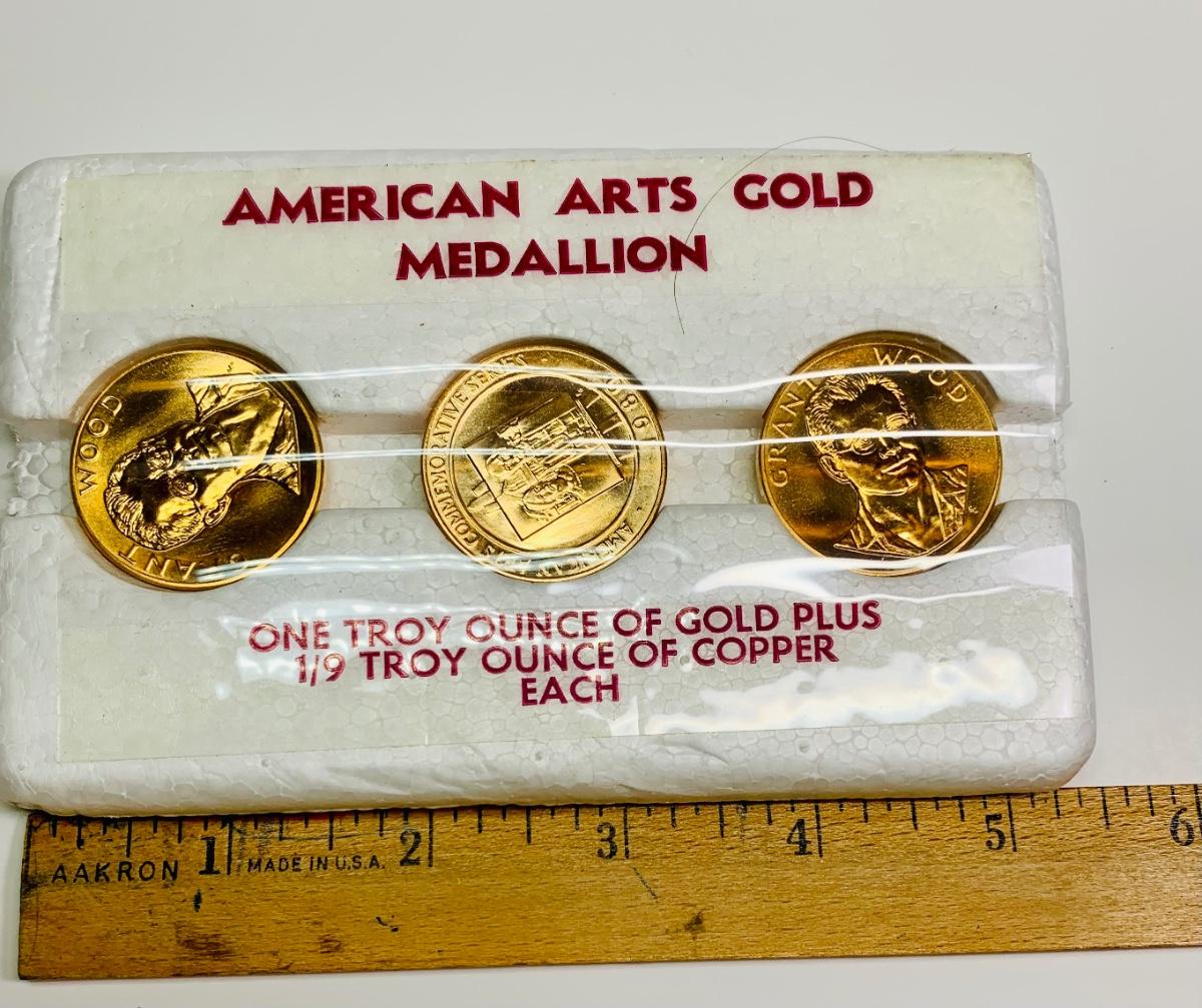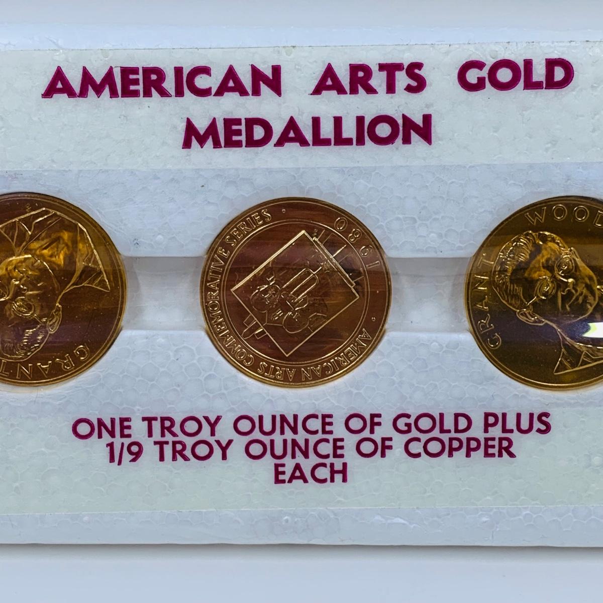 LOT 101: American Arts Gold Medallion Collection, 3 - 1oz. Gold Coins Set, 1980 Grant Wood Collection