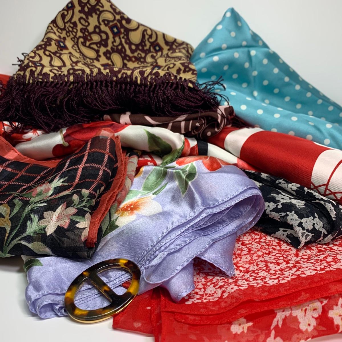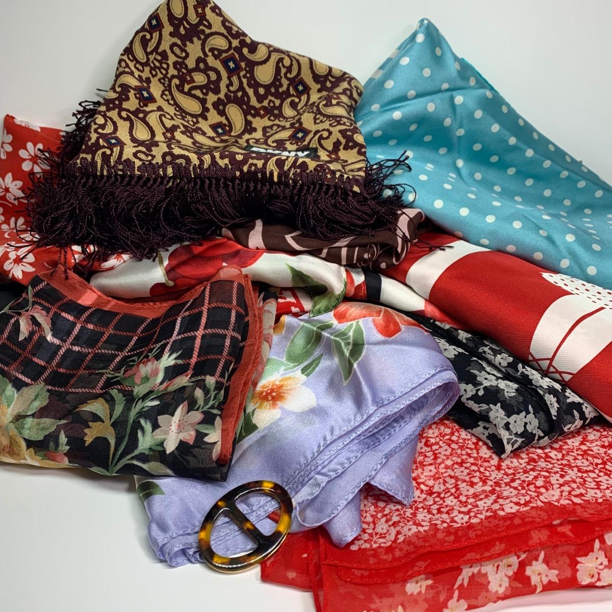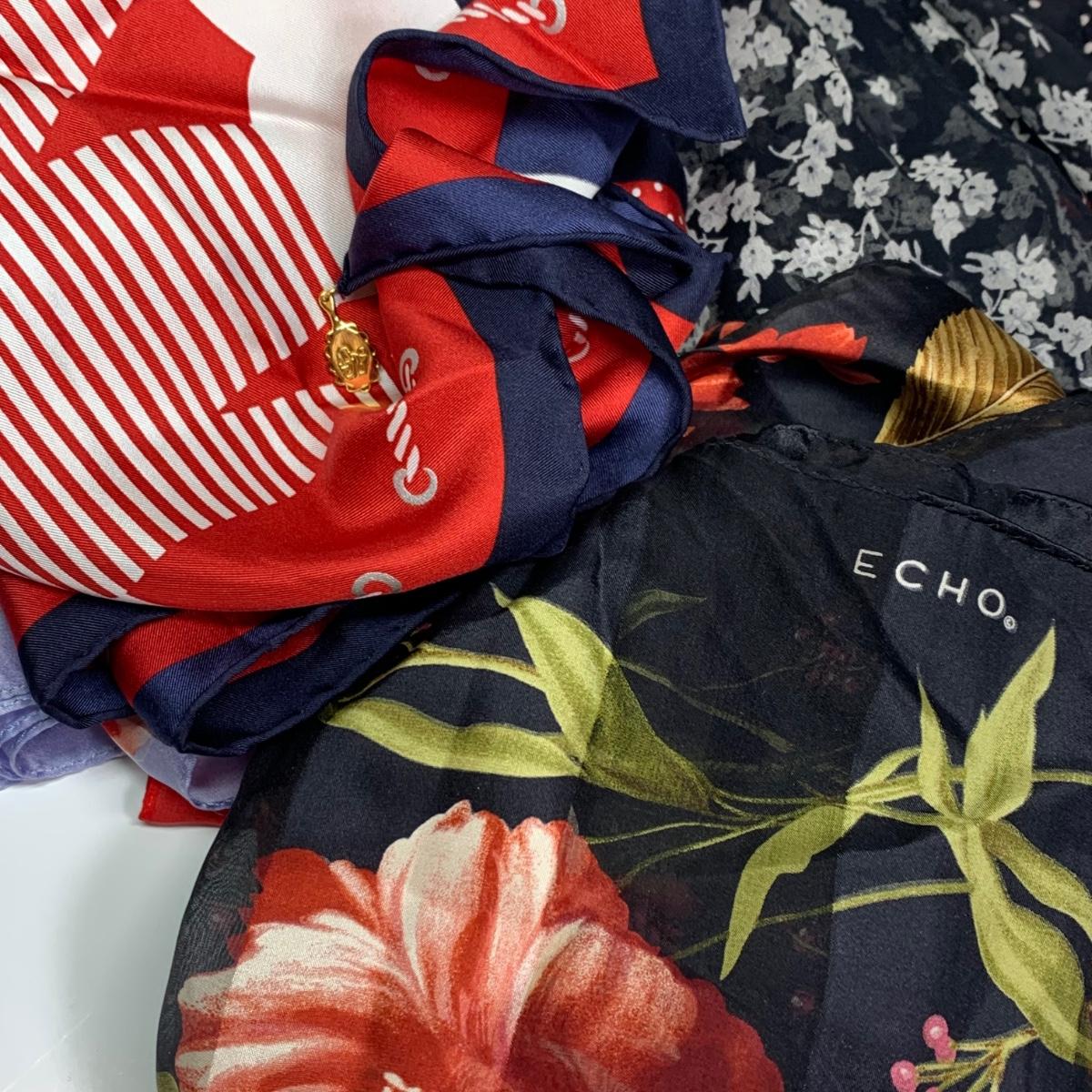 LOT 103: Vintage Acrylic Tortoise Scarf Slide & Scarves including Lulu Guinness, Ralph Lauren, Echo, DKNY