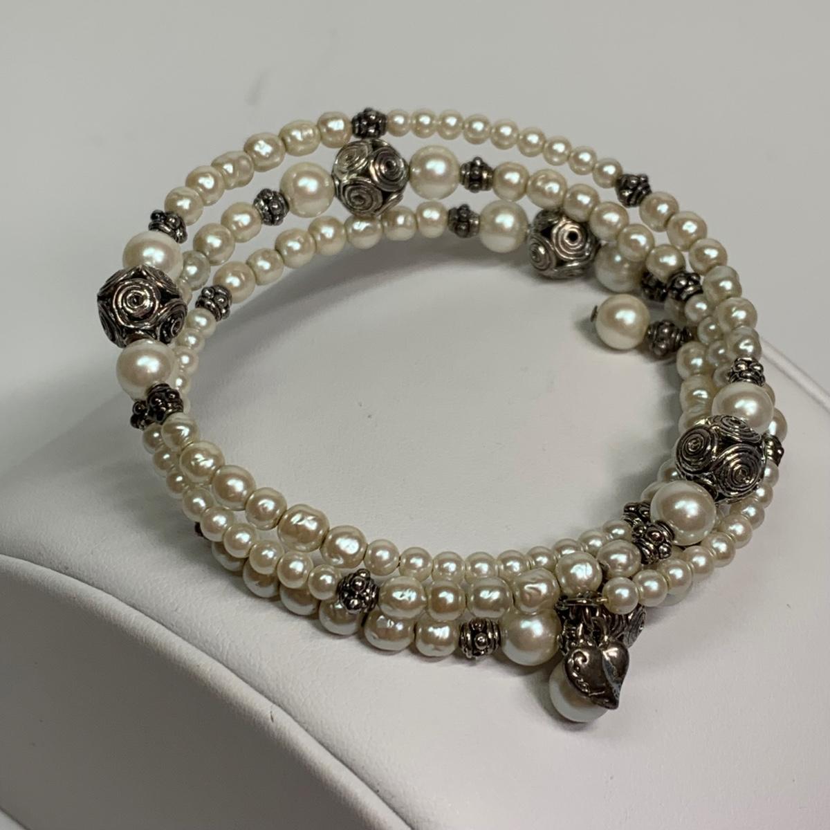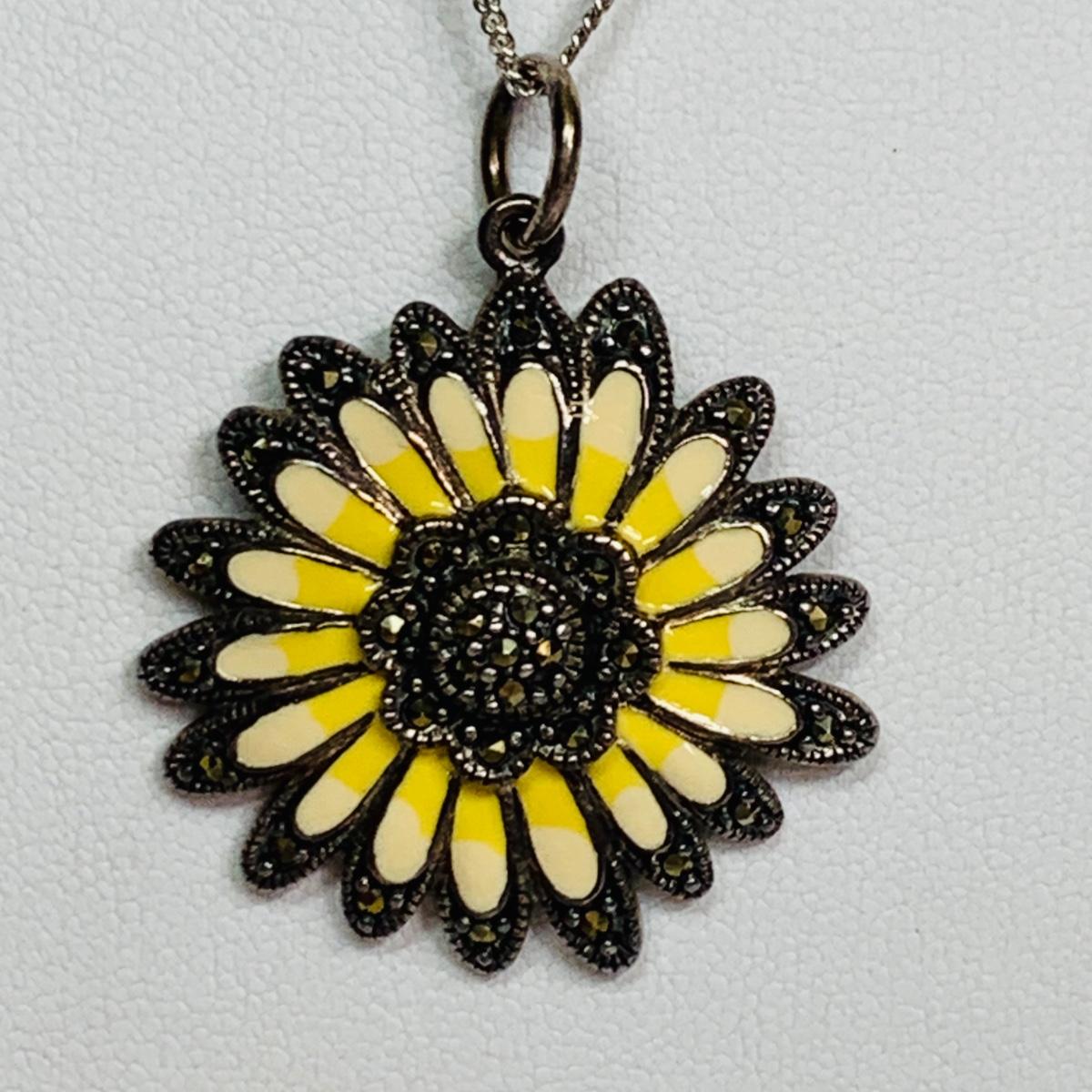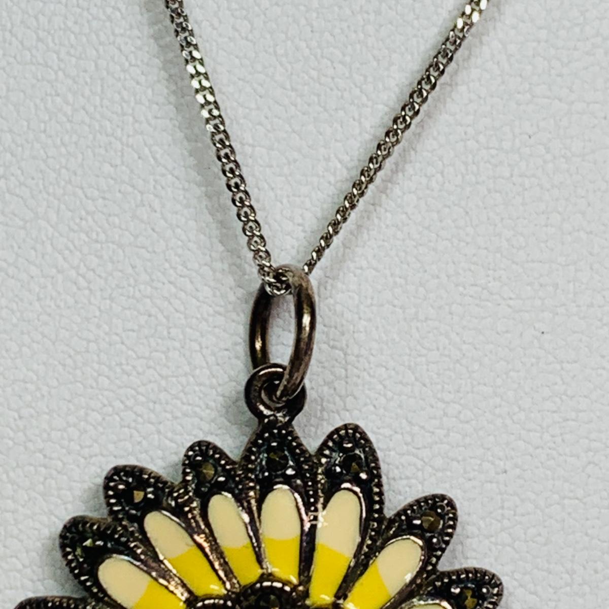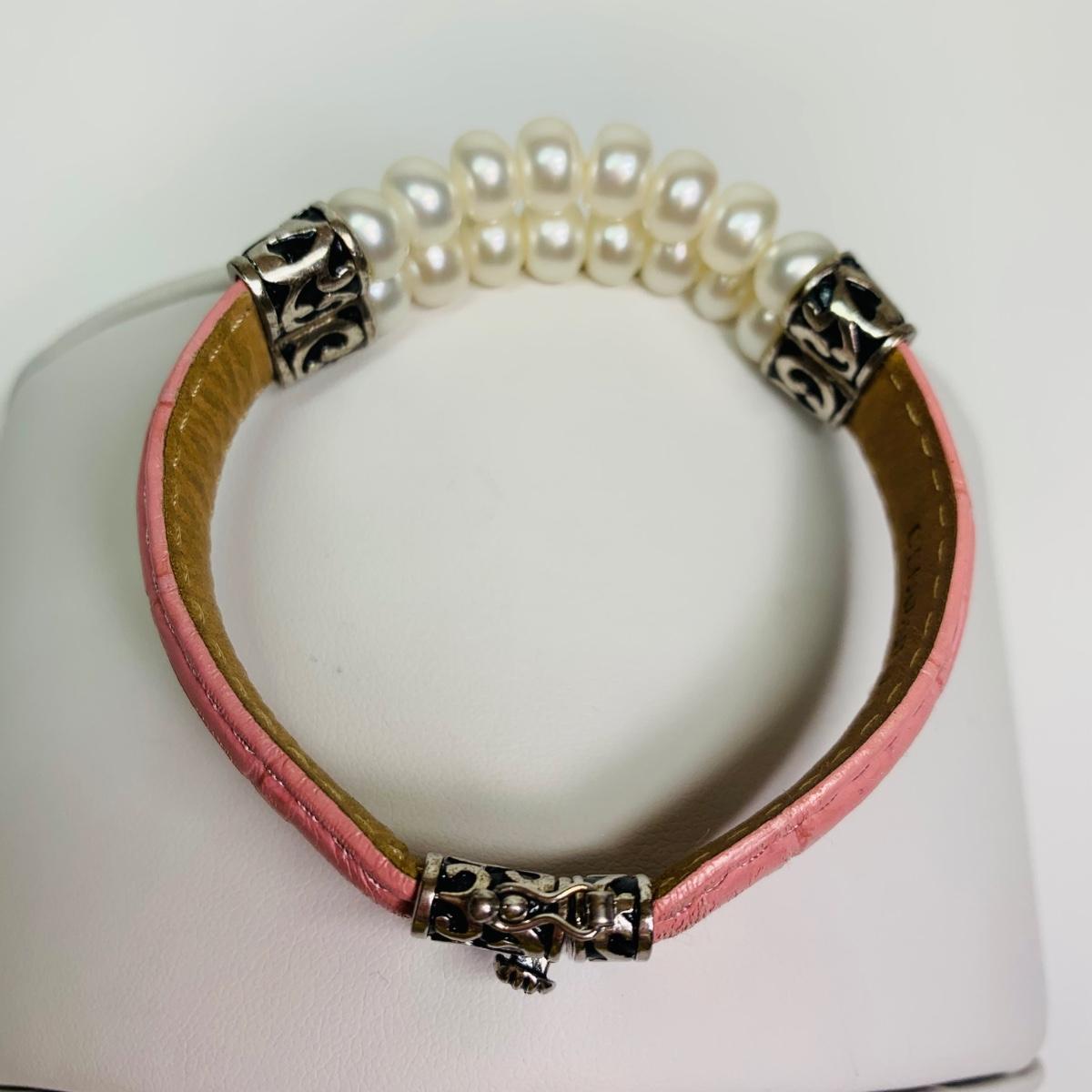 LOT 109: Sterling Silver 925 Marcasite Enamel Pendant on a 16" Chain, 925 Honora Pink Pearl & Pink Leather Band Magnetic Bracelet & More