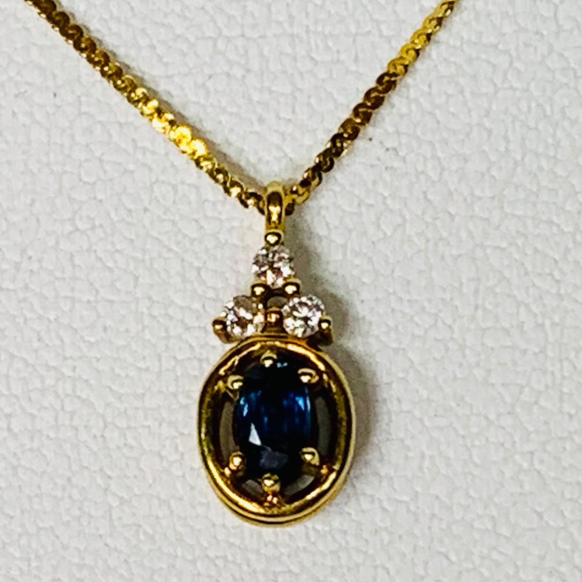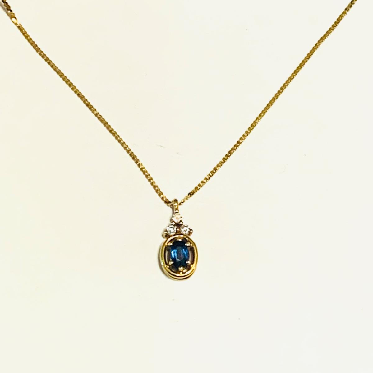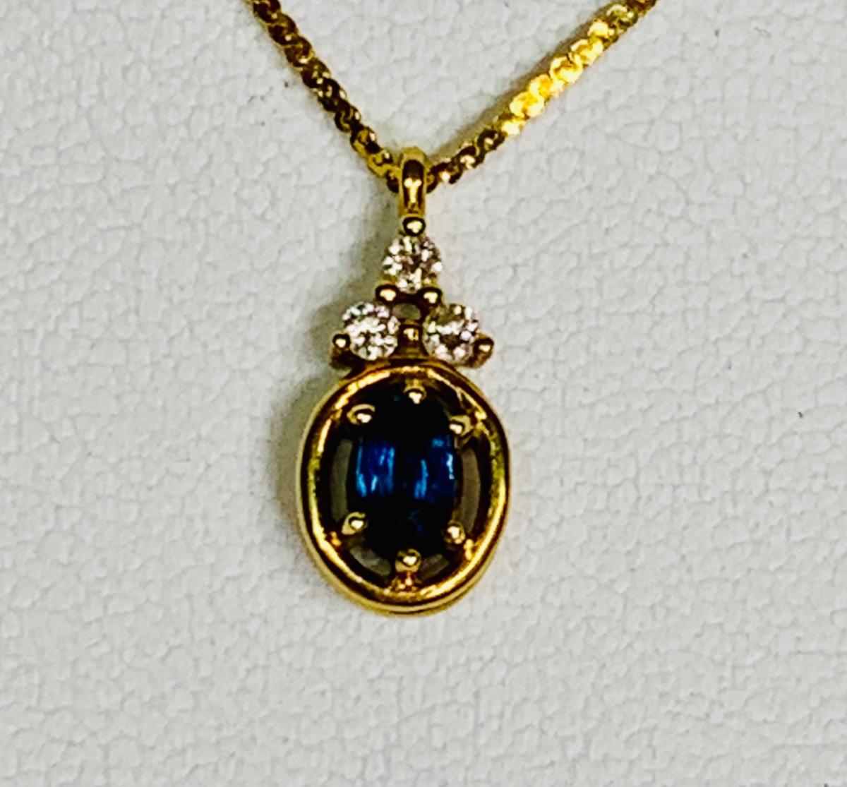 LOT 111: Blue Sapphire & Diamond Necklace: 14k, 16", 2.26g Tw.