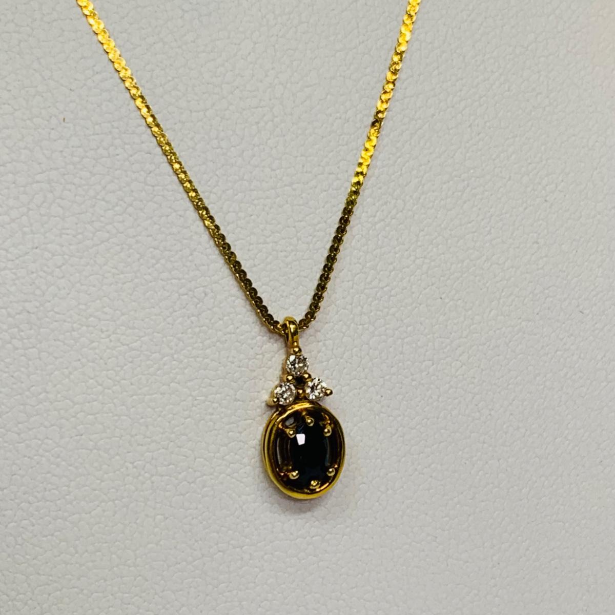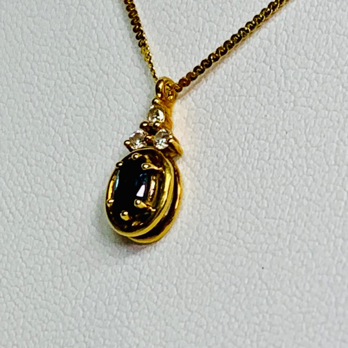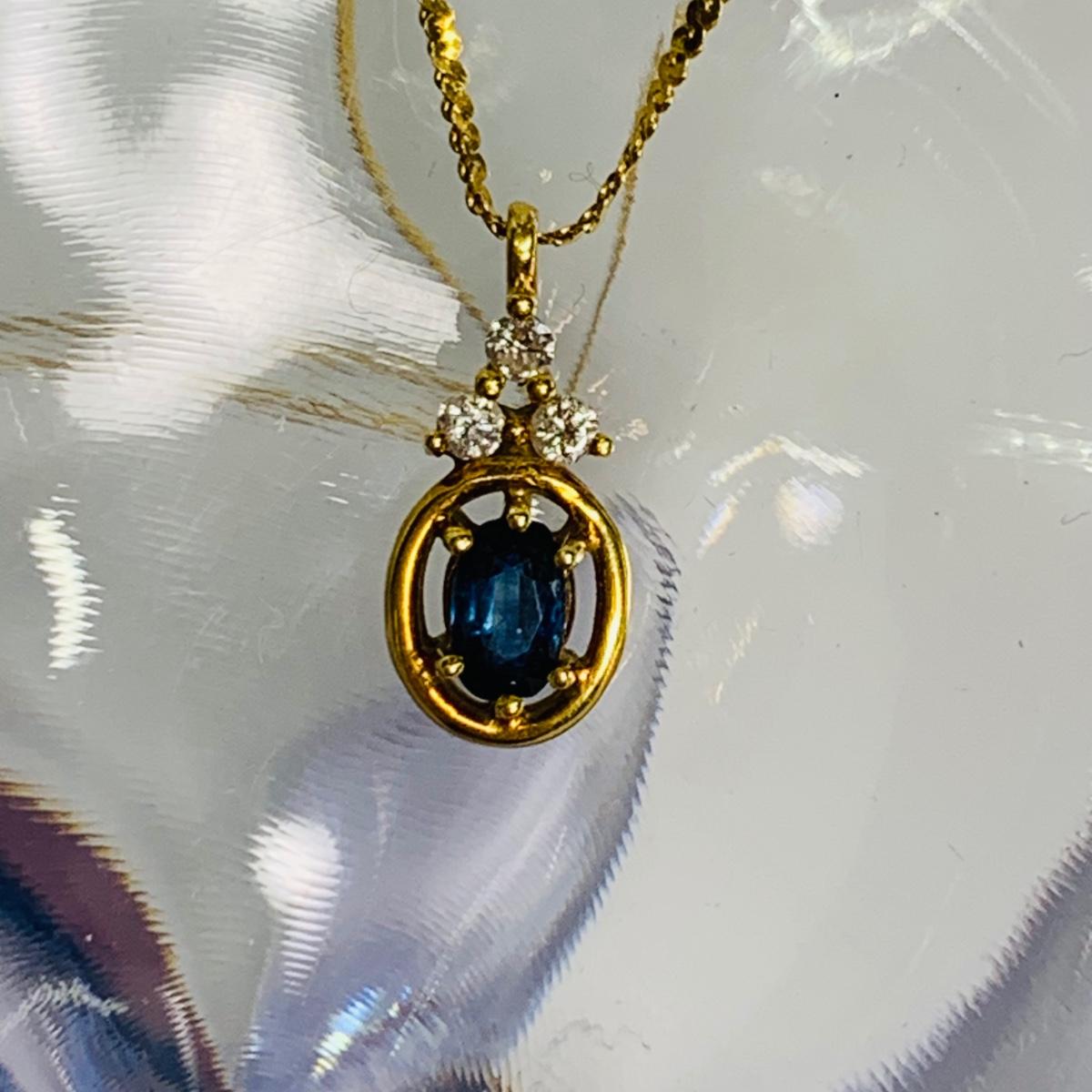 LOT 111: Blue Sapphire & Diamond Necklace: 14k, 16", 2.26g Tw.