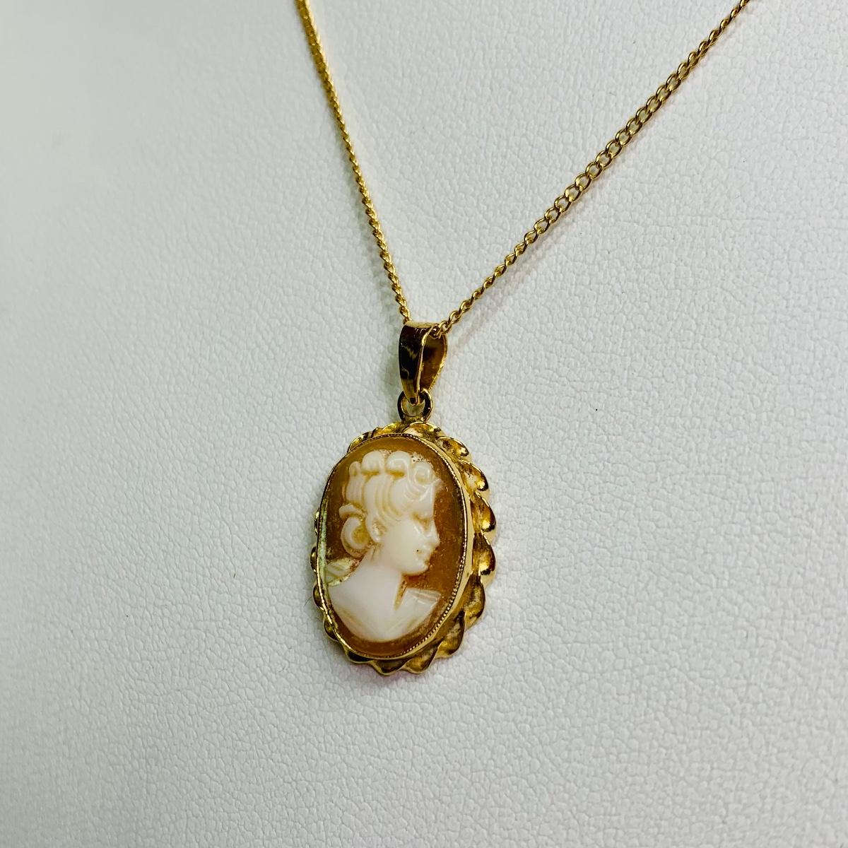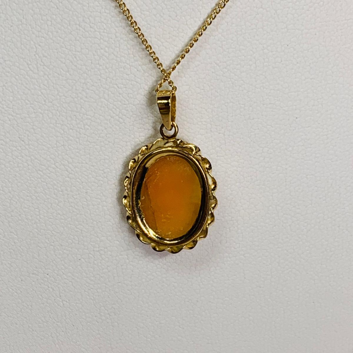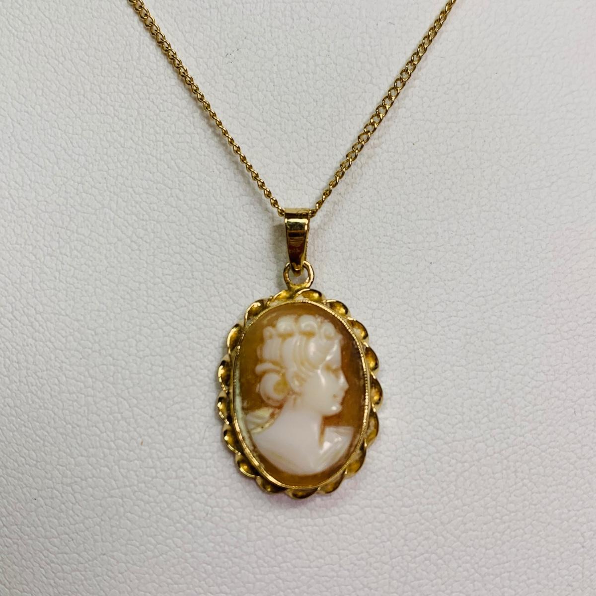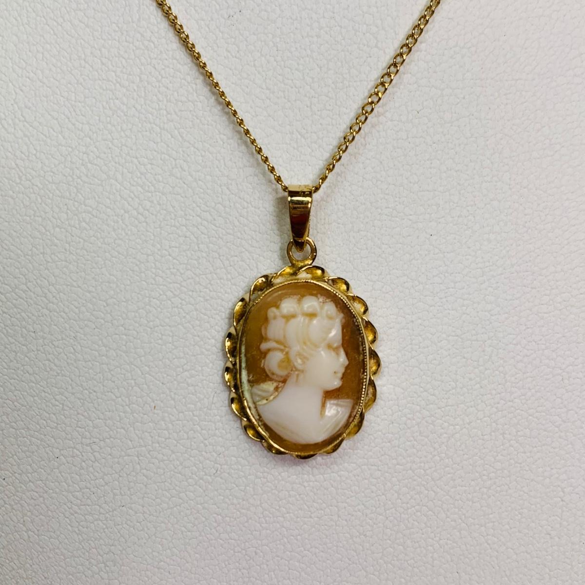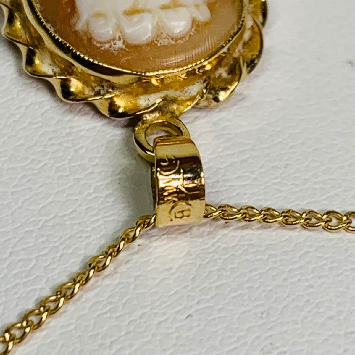LOT 114: Cameo Pendant, 14k, 1.74g Tw. & 14k Gold Chain, 16", 1.29g Tw