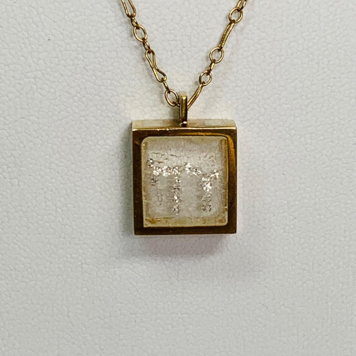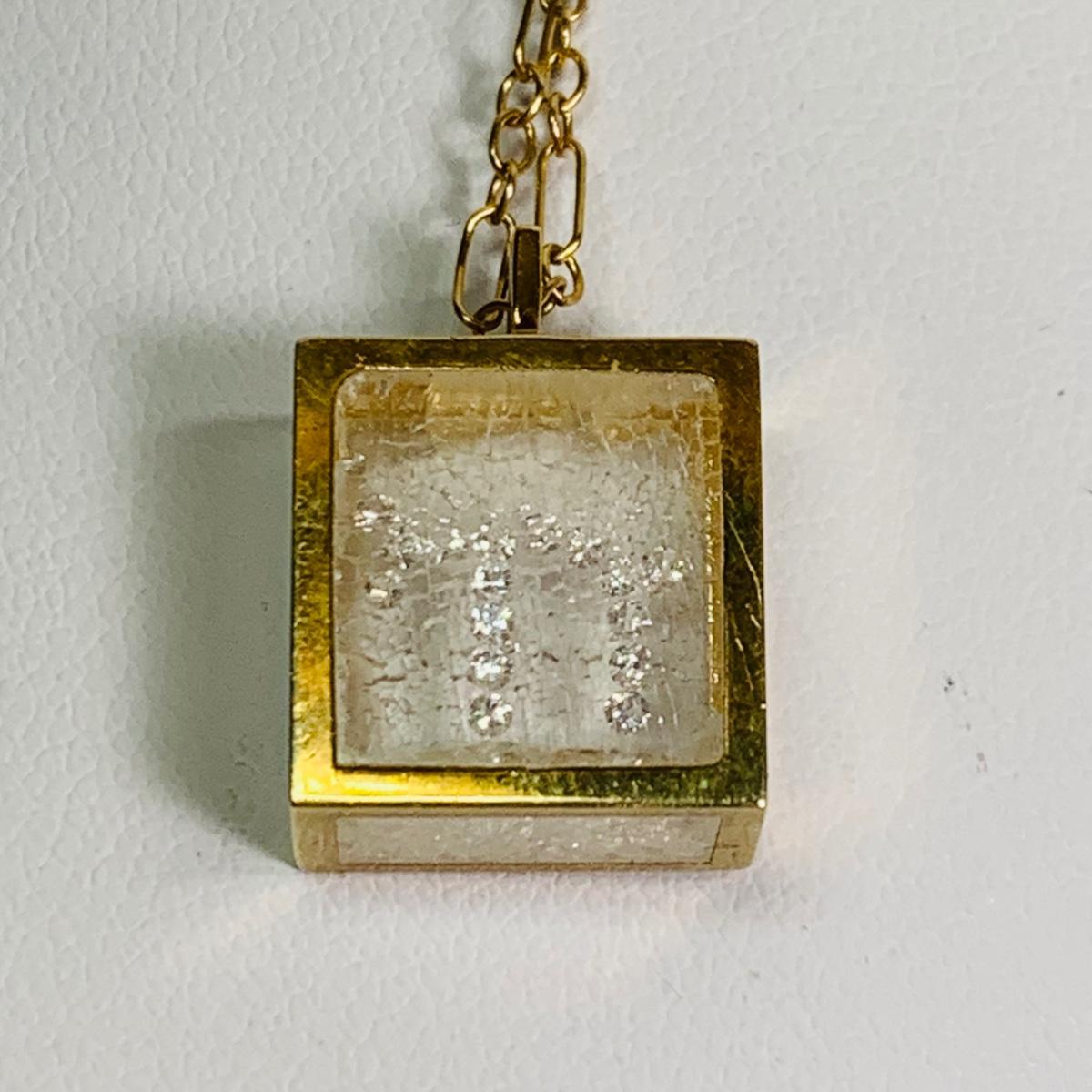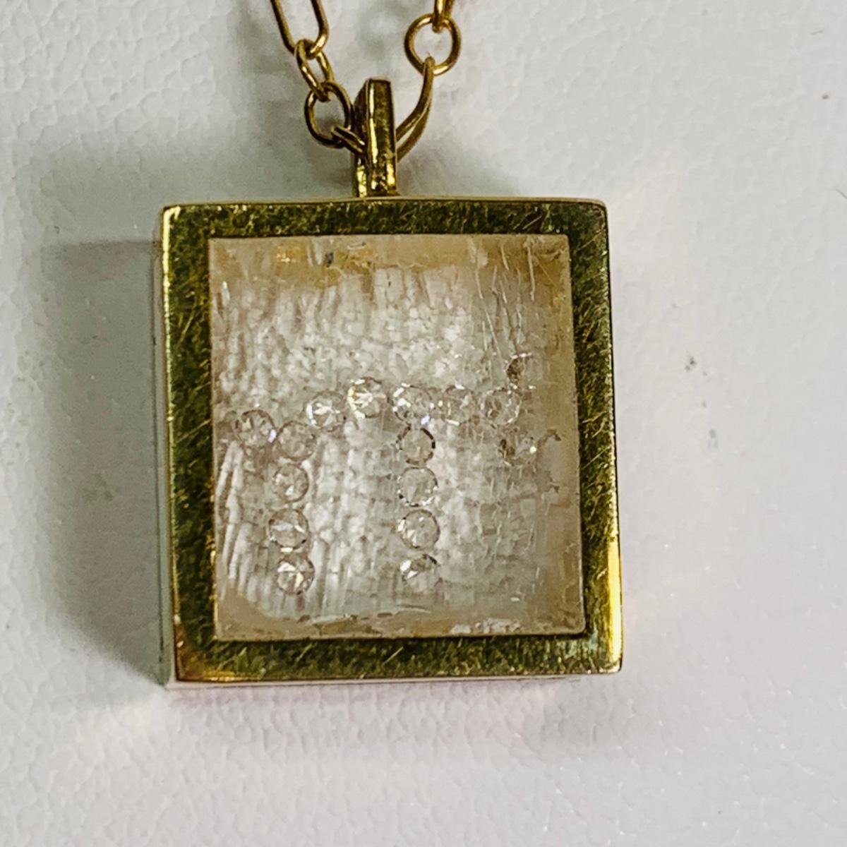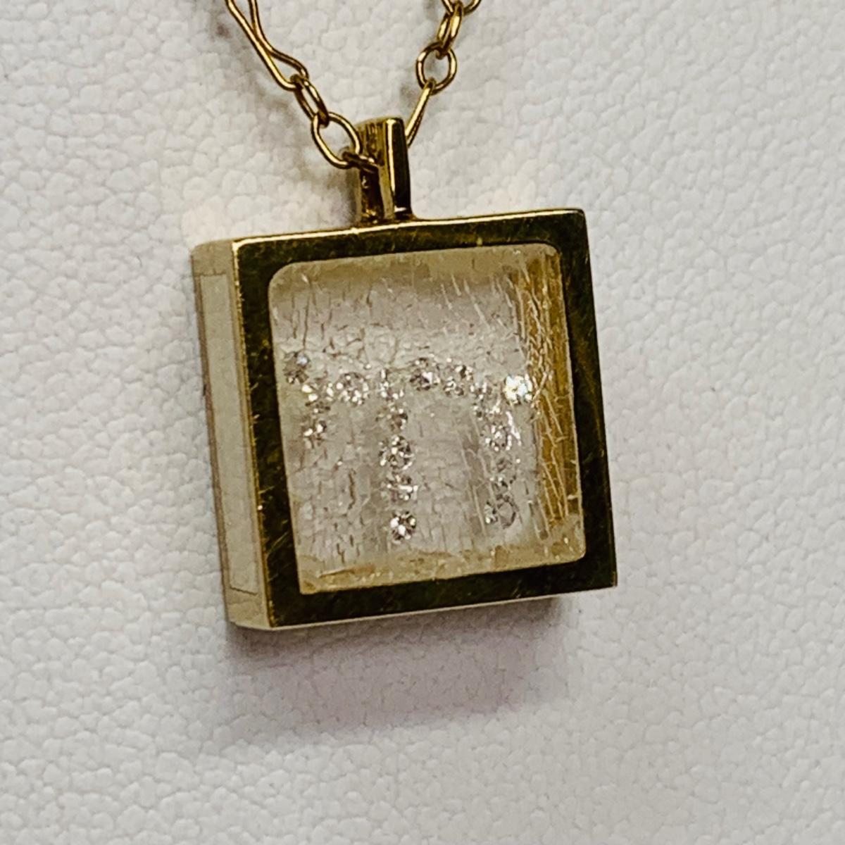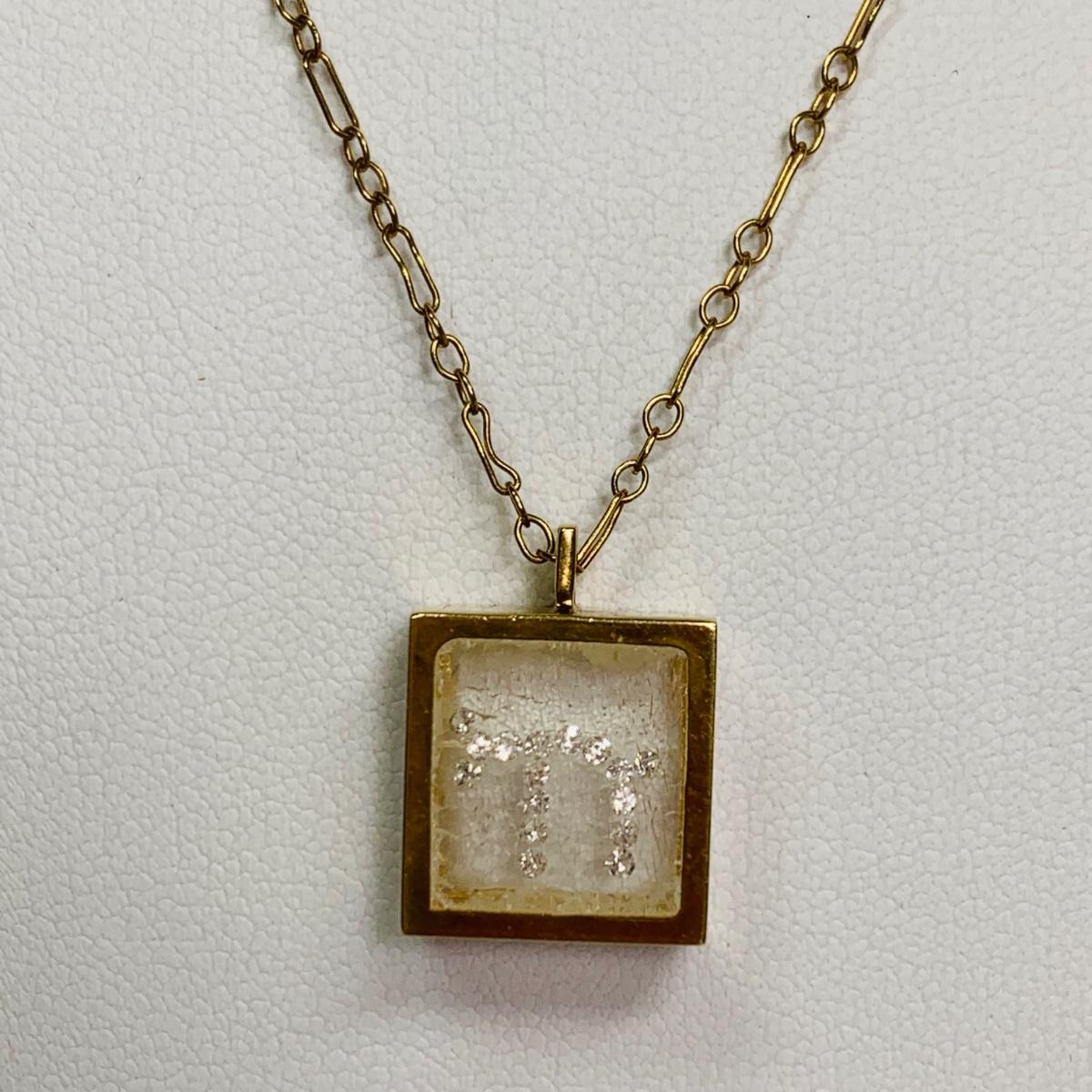LOT 115: 14k Floating Diamond Chai Shadowbox Pendant & 14K Gold Chain, 16", 3.93g Tw.