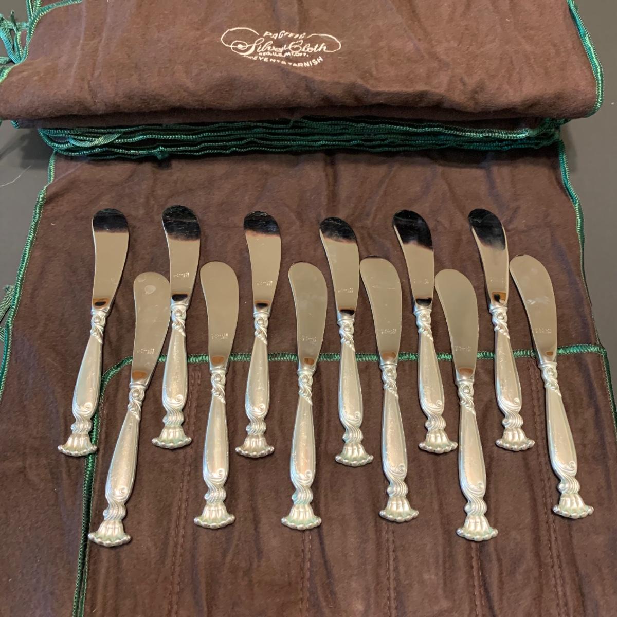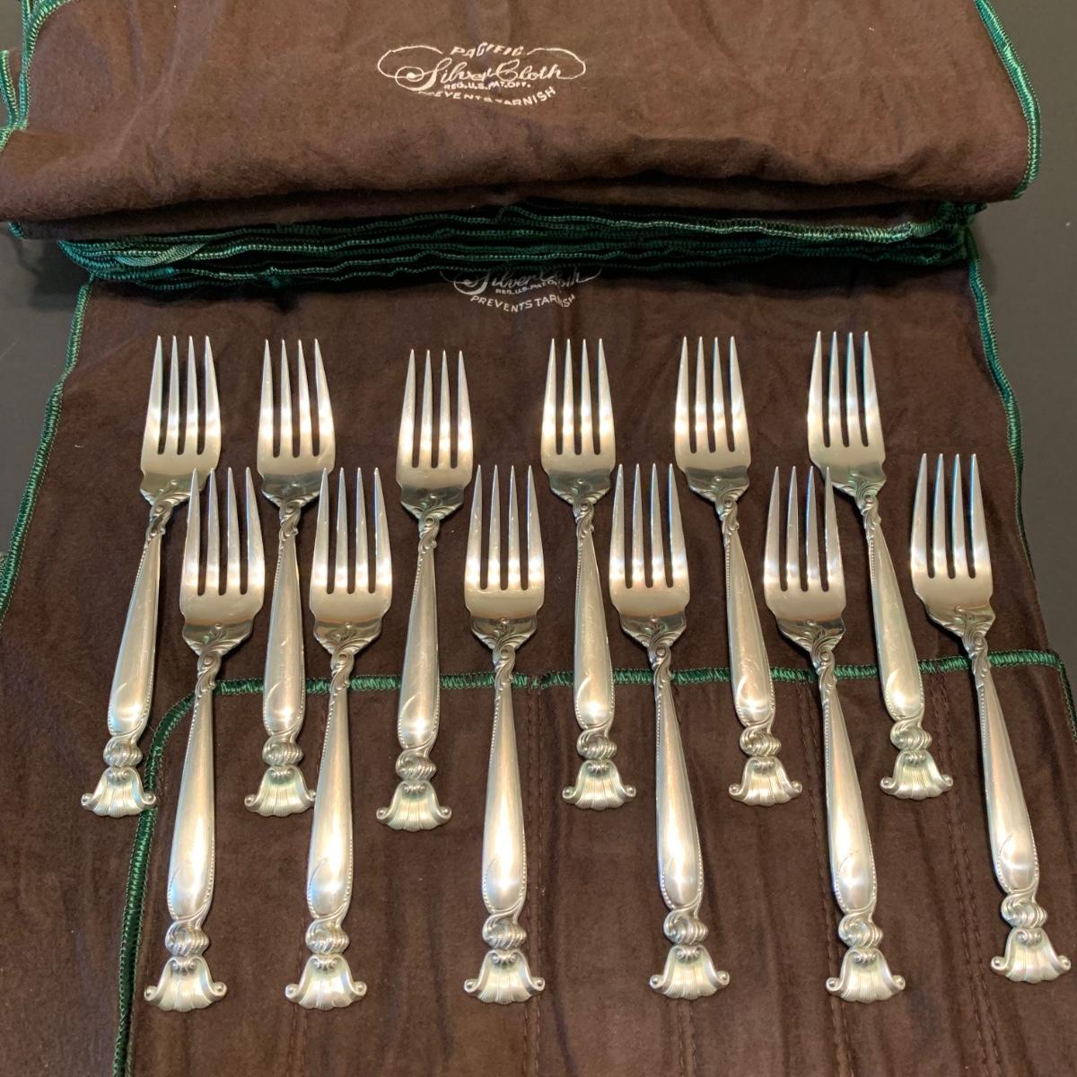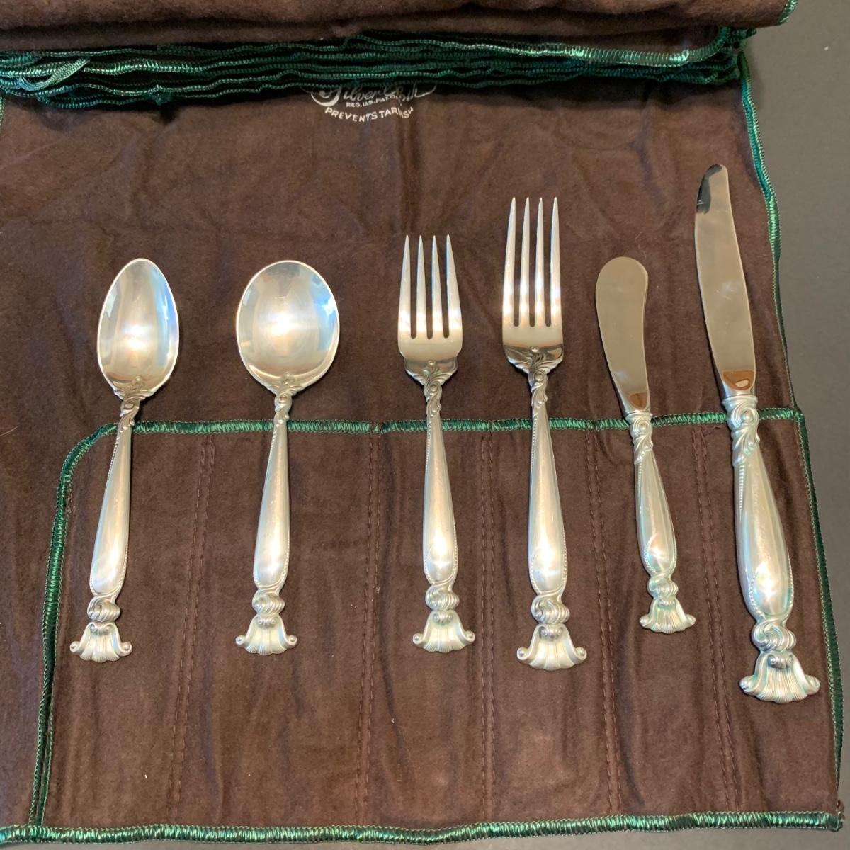 Service for 12: Dinner Fork, Salad/Dessert Fork, Soup Spoon, Teaspoon, Dinner Knife & Butter Knife
