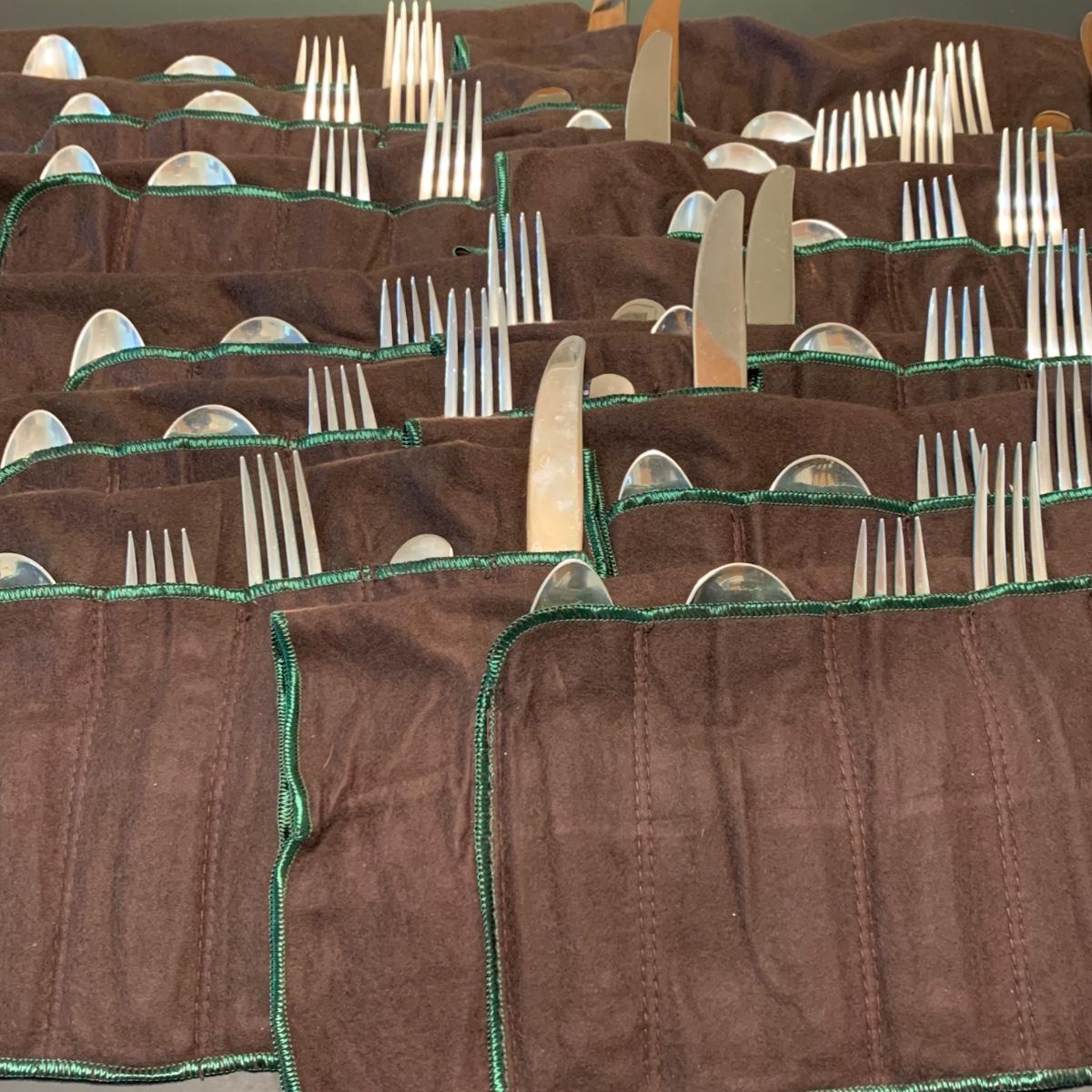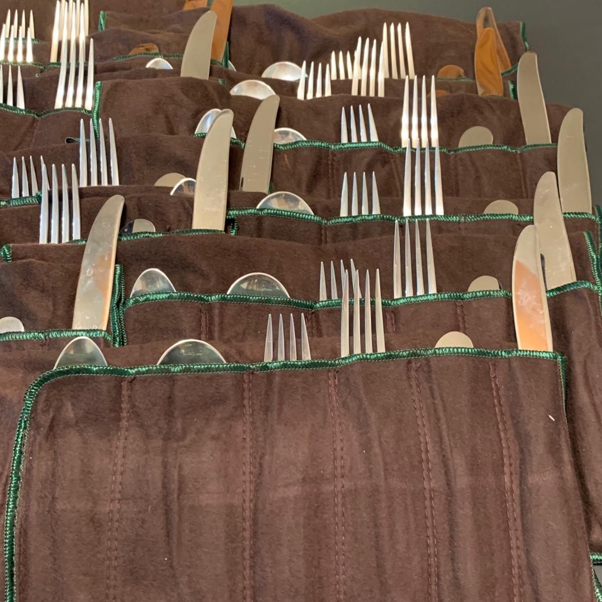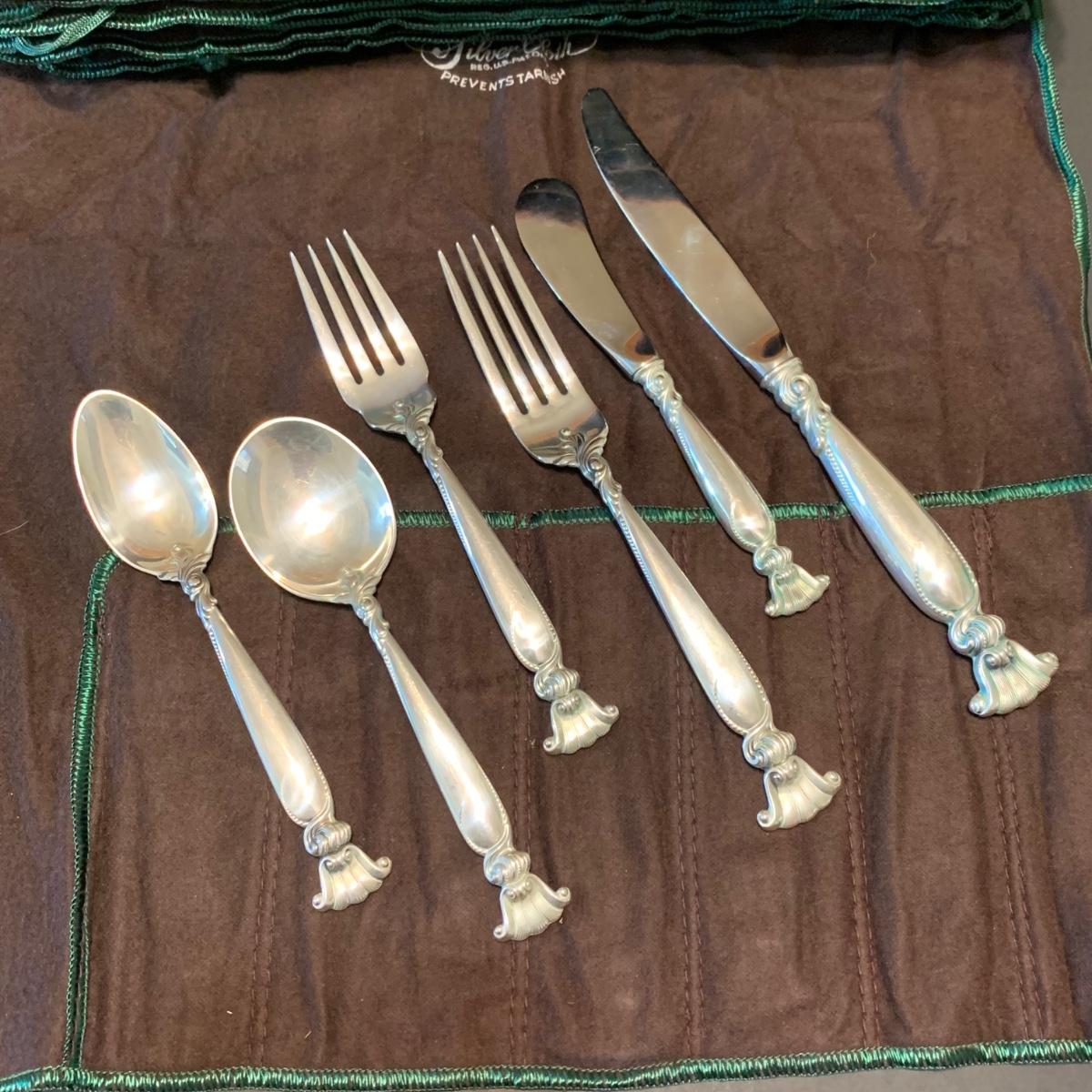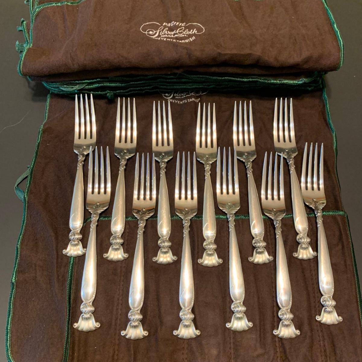 Service for 12: Dinner Fork, Salad/Dessert Fork, Soup Spoon, Teaspoon, Dinner Knife & Butter Knife