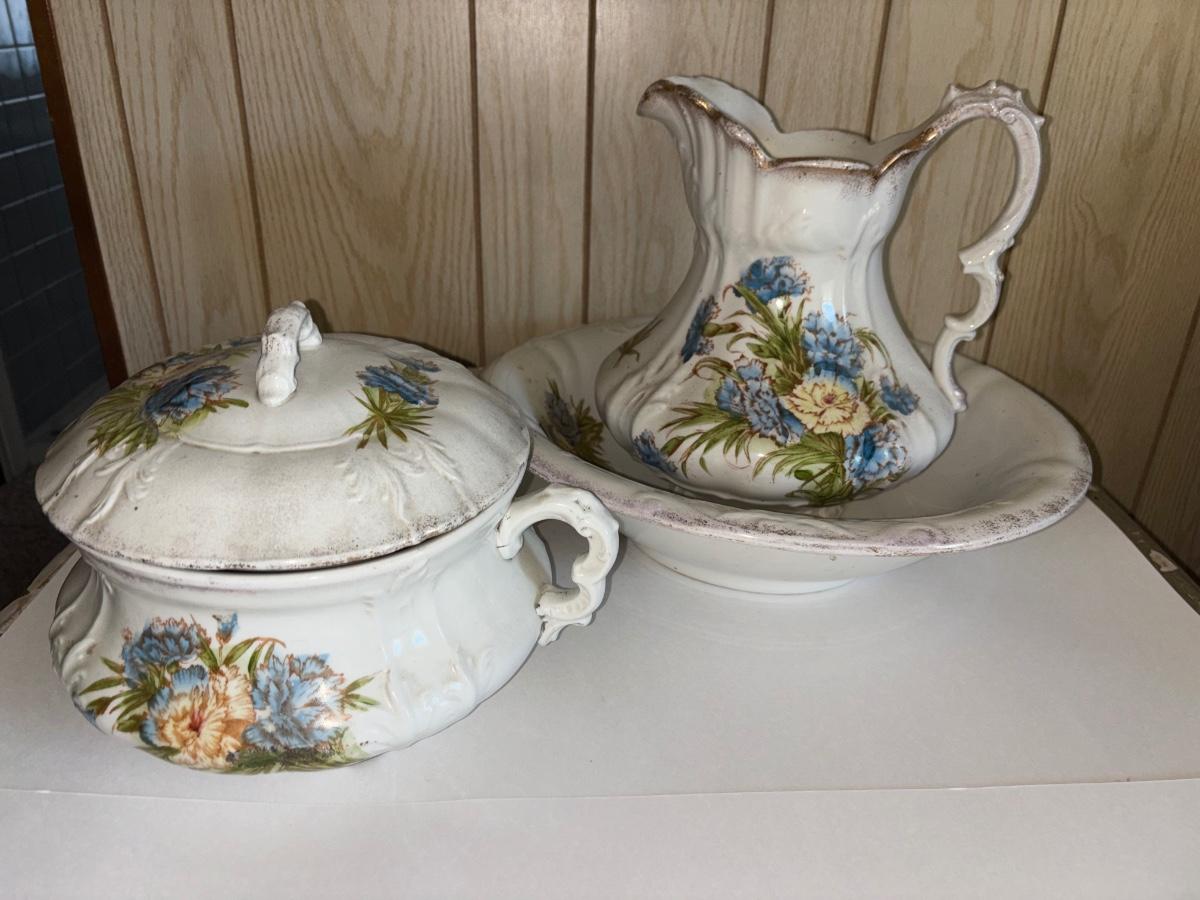 Lot 999x: 3 piece porcelain wash stand chamber pot set