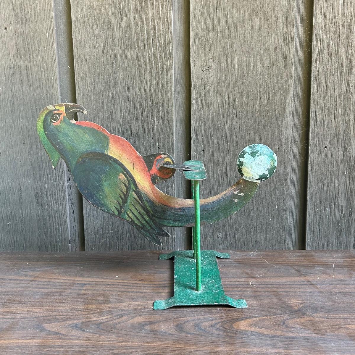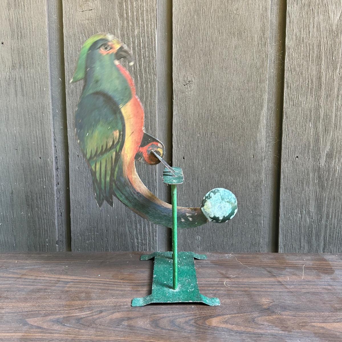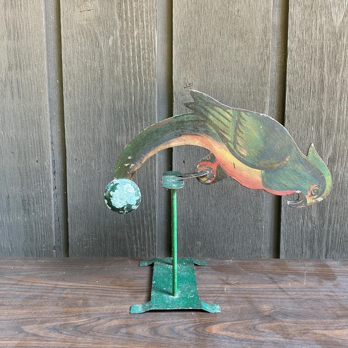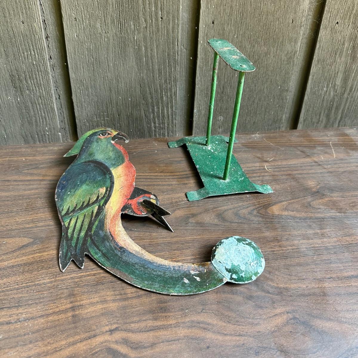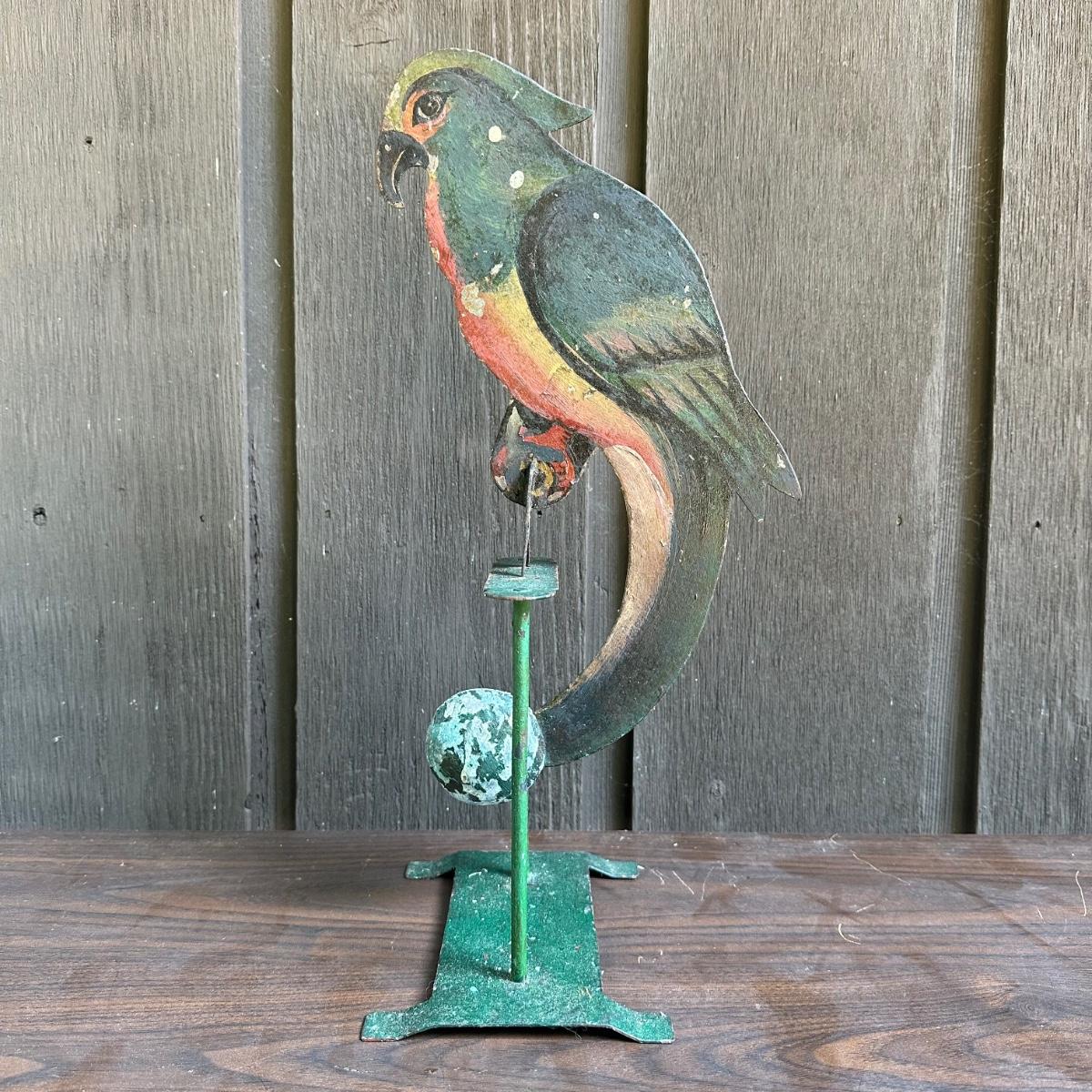 LOT 99G: Antique Hand Painted Metal Parrot Balancing Folk Art Toy circa 1900