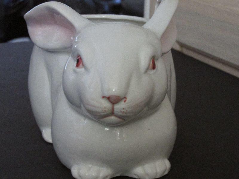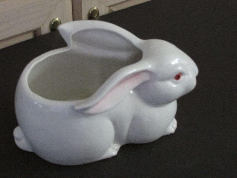 Fitz & Floyd Ceramic Rabbit. Some pitting in a few areas and some cracking of glaze on the bottom.