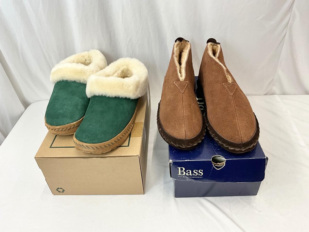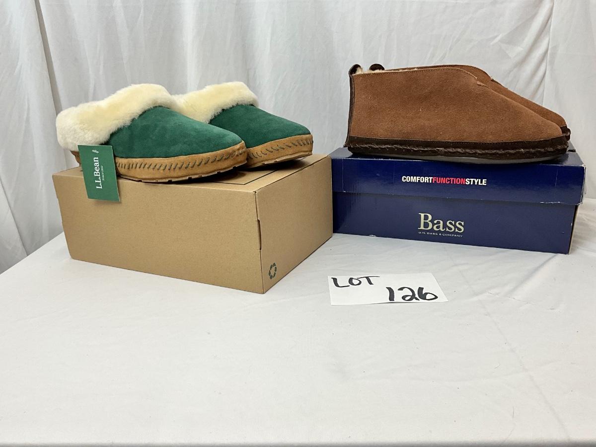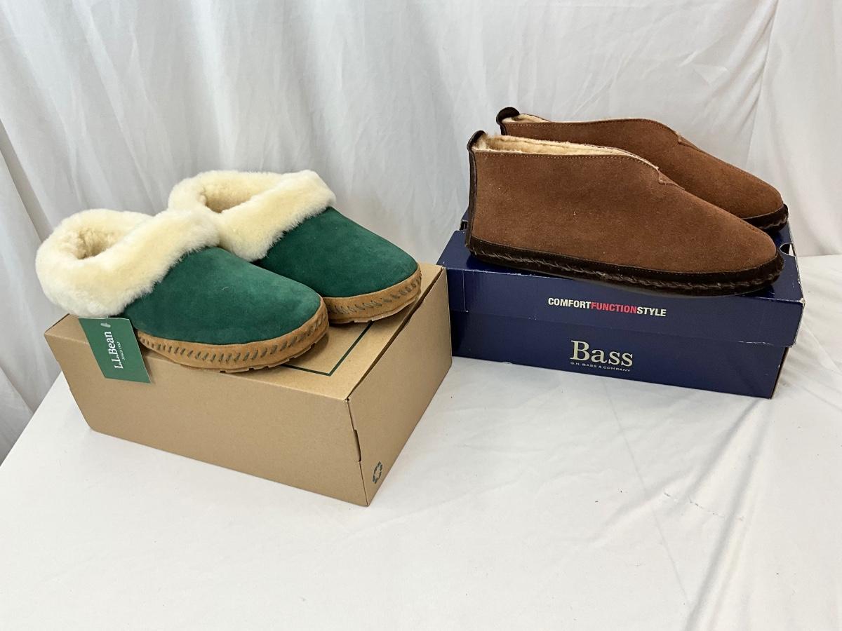 Lot A 126 NIB LLBean Wicked Good Sheepskin Slipper (size 8) & NIB Bass Grizzly Slippers (size 9)