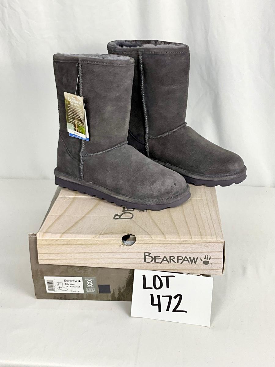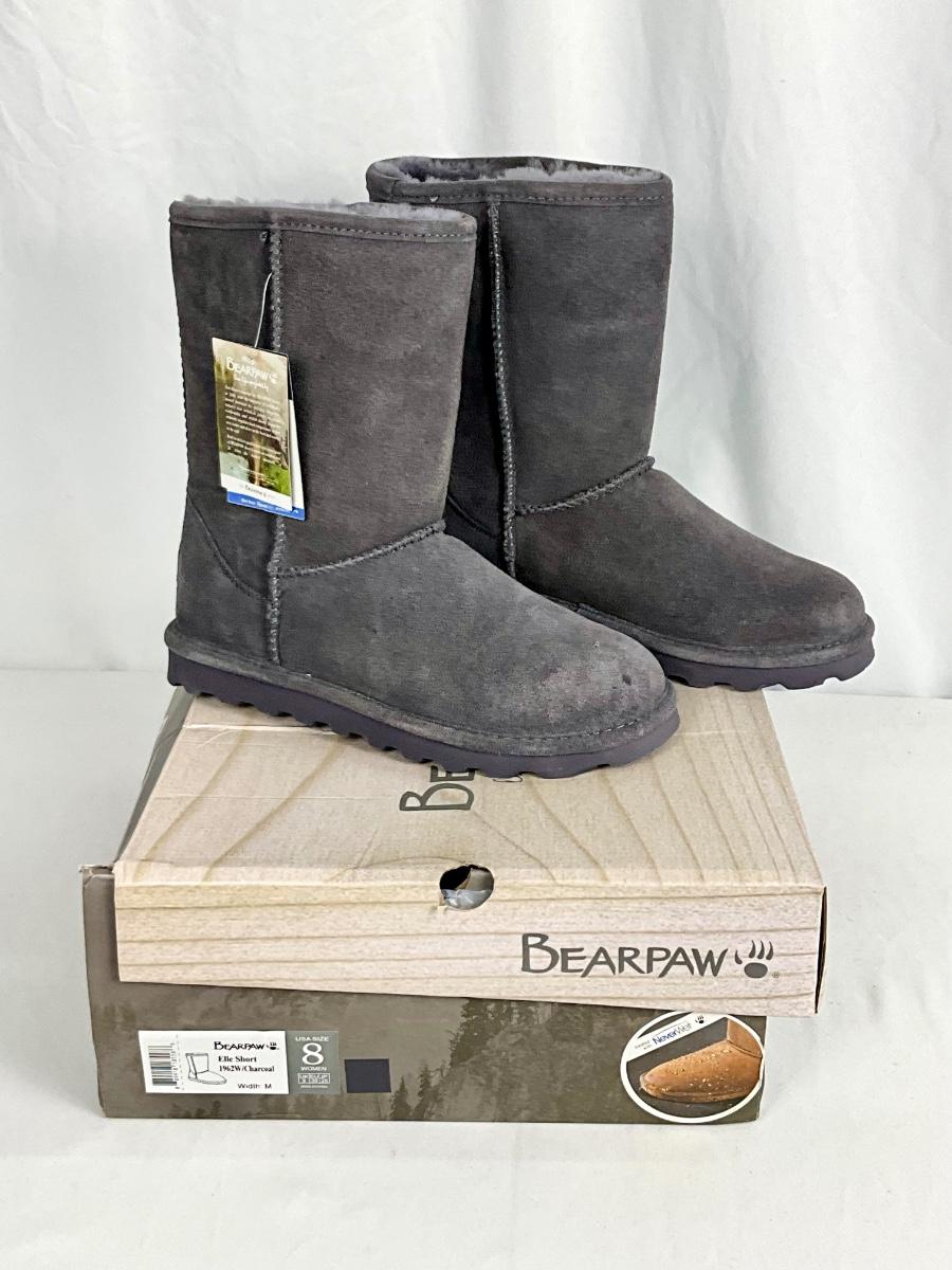 Lot A 472 NIB Bearpaw Elle Short Suede Charcoal Boot (size 8)
