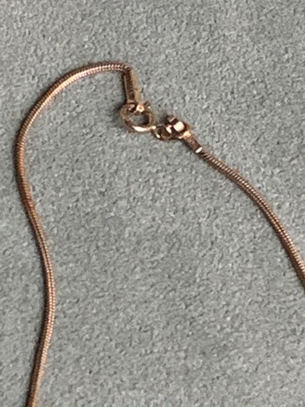 Chain 14kt plated. Please contact me if you win this auction and I will not charge you as a mistake was done on this lot and it is only gold plated. Sorry for the inconvenience.