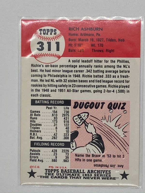 Lot A13: Richie Ashburn Autographed 1991 Baseball Card Signed