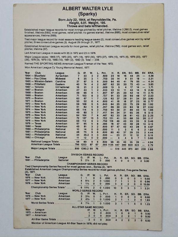 Lot A18: Sparky Lyle Autographed Program Card Signed Claridge