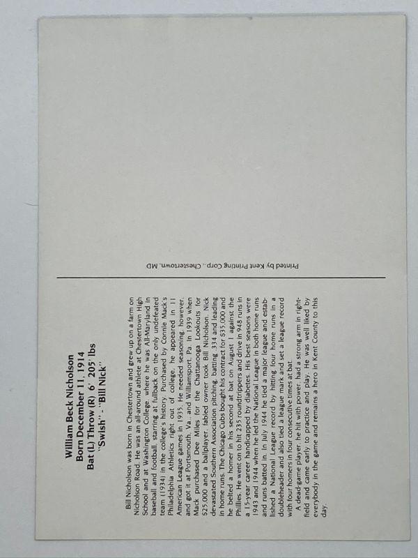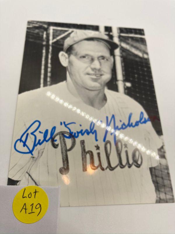 Lot A19: Bill "Swish" Nicholson Autographed Photograph Postcard Baseball