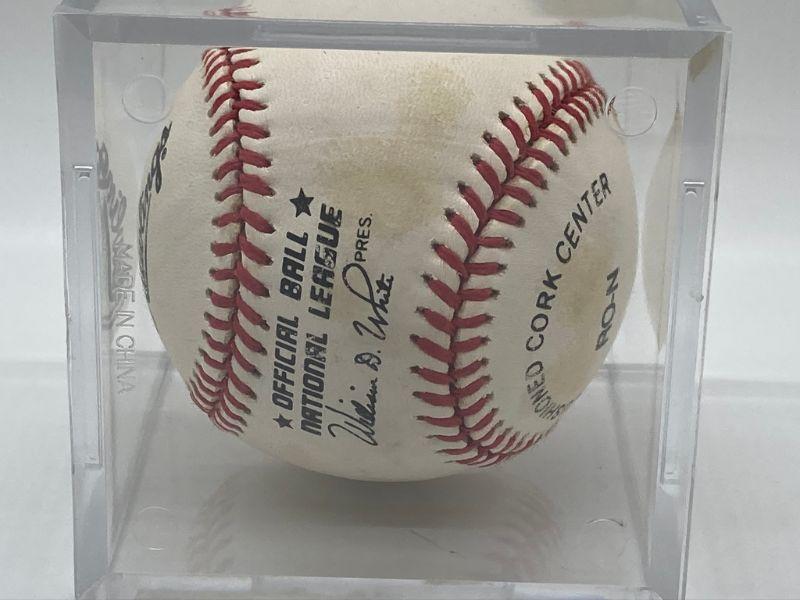 You are bidding on the autographed baseball pictured. No COA. Please see pictures for best idea of overall condition. Every lot in this amazing sports memorabilia auction will go to the highest bidder; no reserves or buy it now prices. Good luck and happy bidding!