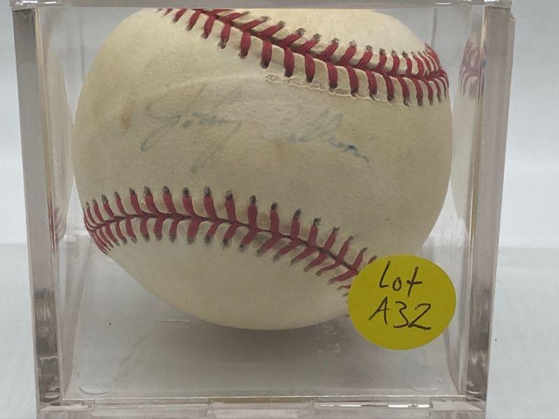 You are bidding on the autographed baseball pictured. No COA. Please see pictures for best idea of overall condition. Every lot in this amazing sports memorabilia auction will go to the highest bidder; no reserves or buy it now prices. Good luck and happy bidding!