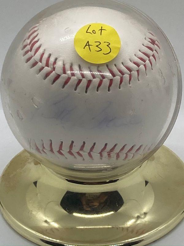 You are bidding on the autographed baseball pictured. No COA. Please see pictures for best idea of overall condition. Every lot in this amazing sports memorabilia auction will go to the highest bidder; no reserves or buy it now prices. Good luck and happy bidding!