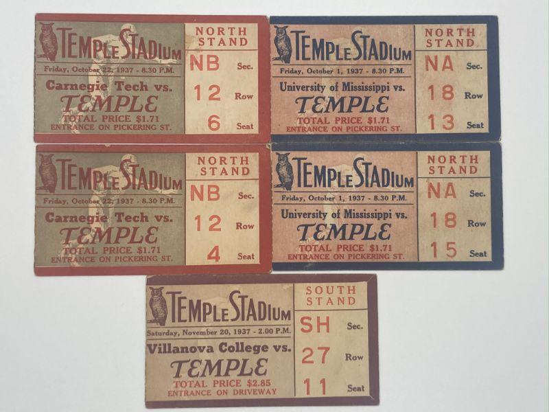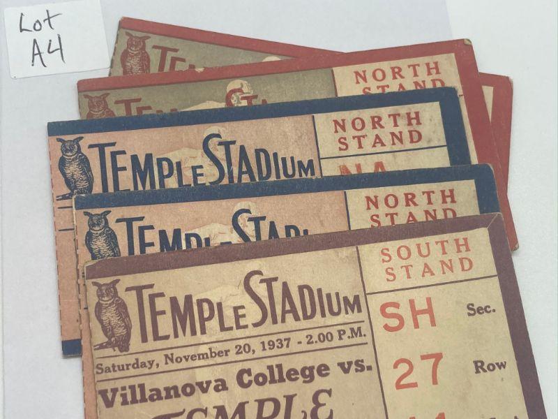 Lot A4: Five Vintage Temple College Football Ticket Stubs 1937