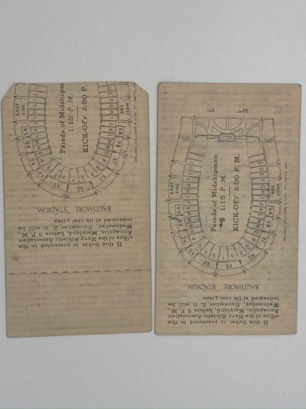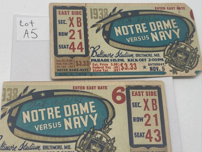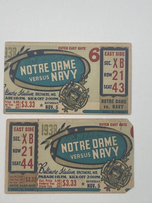 Lot A5: Pair of Vintage Notre Dame vs. Navy College Football Ticket Stubs 1938