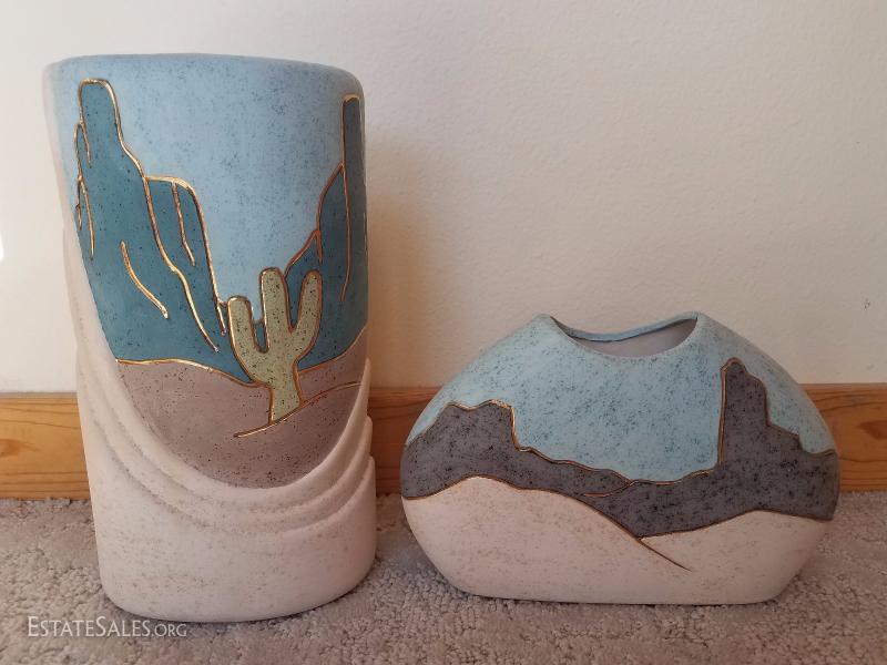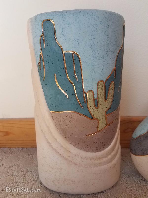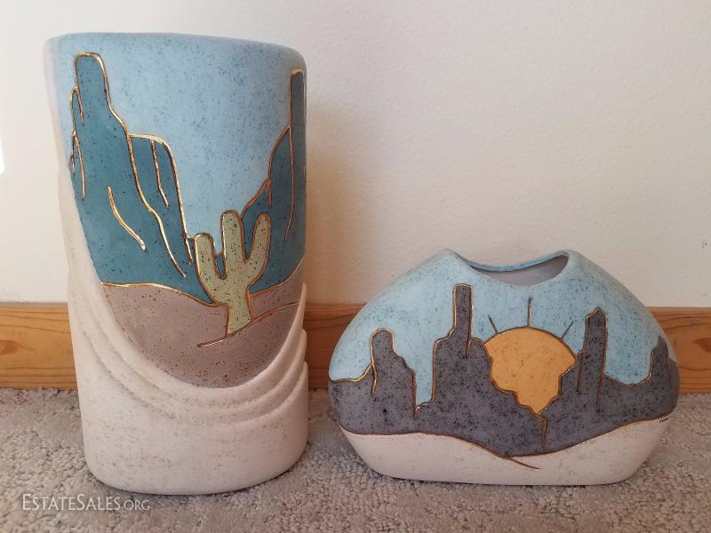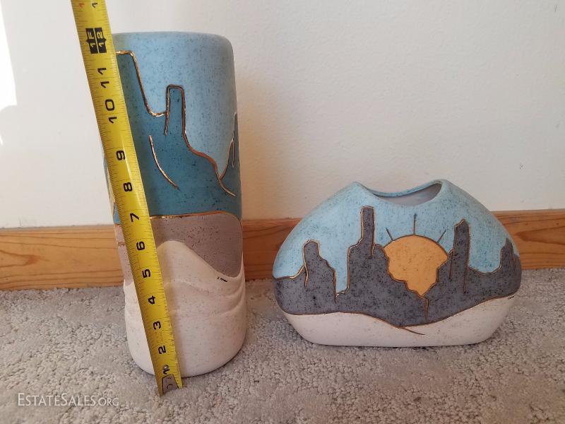 Lot A7 2 Pc Soutwest Pottery Artist Signed Decorative Vases #3