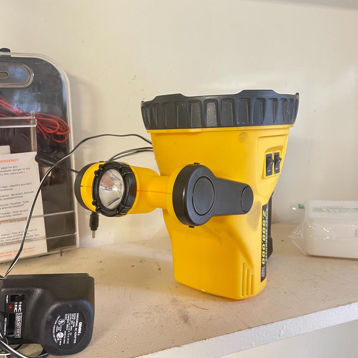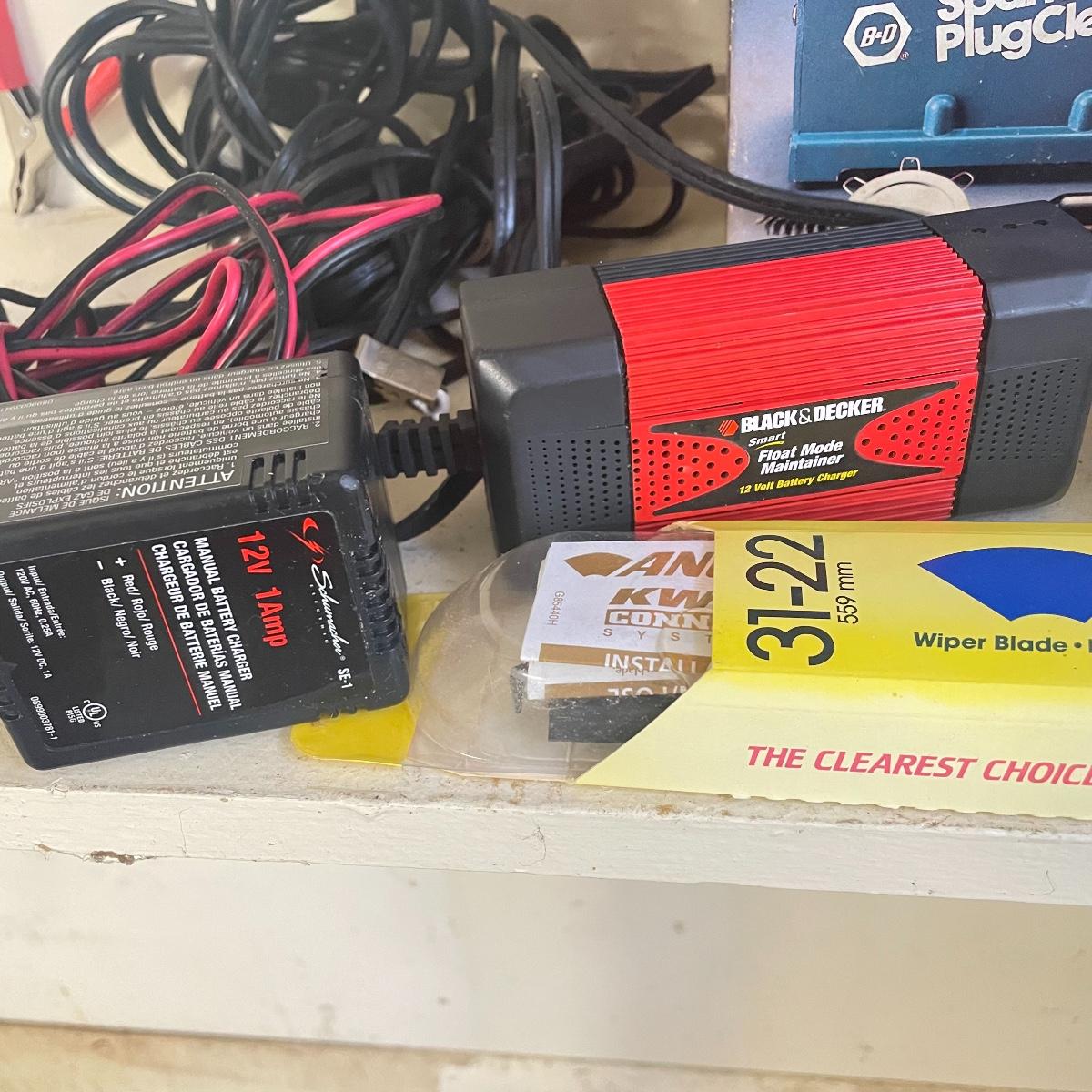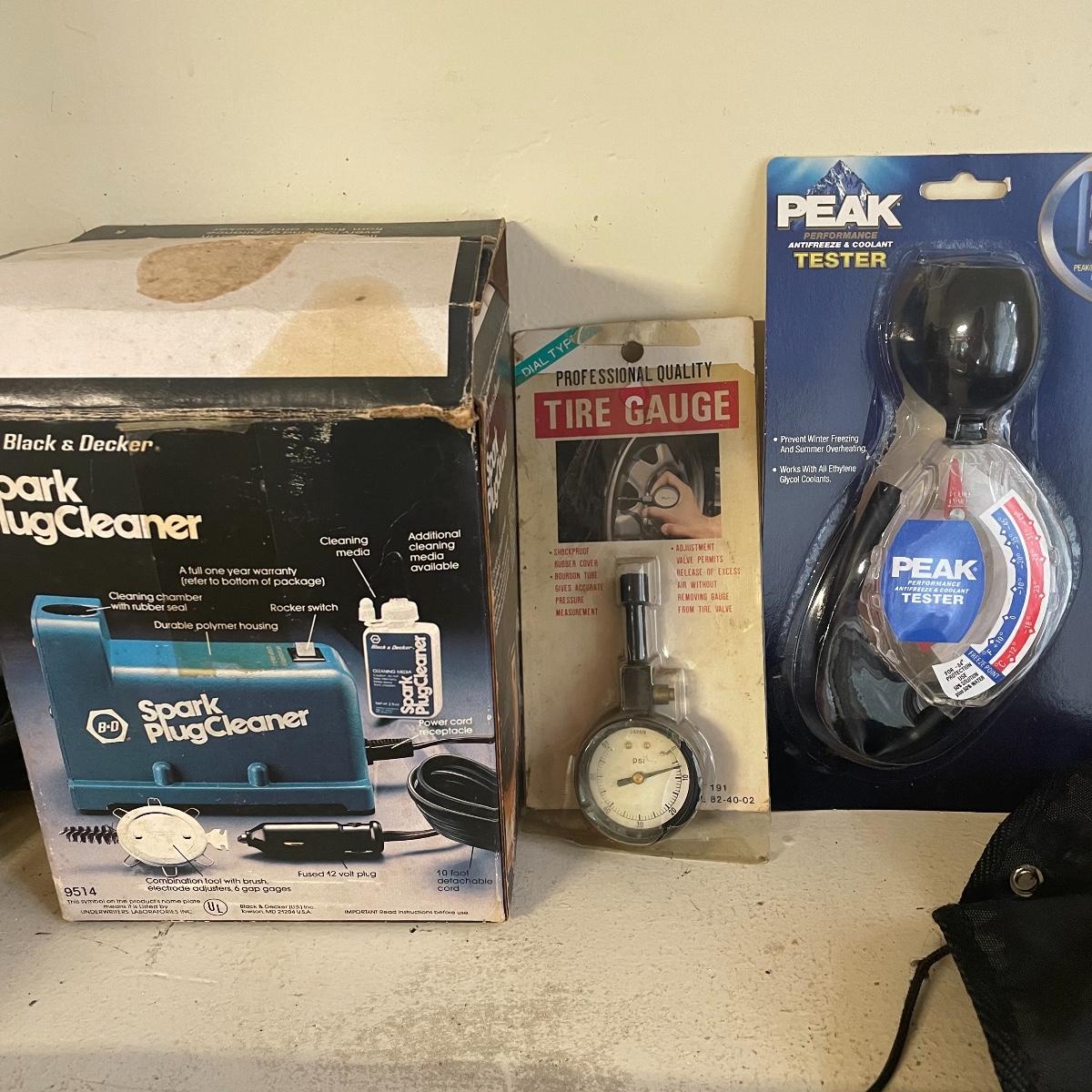 With all the cellular dead zones in WNC, be prepared with these safety items. Safety items include a GE HELP! 40 channel 2-way emergency CB radio, an unopened first aid kit (age unknown), a massive flashlight with adapter and battery capabilities from Space Searcheye. This flashlight shows when it connects to power, but the light doesn’t turn on and probably either needs to charge or needs a new battery. Lot also features a Shark Ultra hand vacuum with plenty of accessories. Hand vac needs to be connected to power outlet and turned on when tested. Other must haves are a Black+Decker 12V battery charger, windshield wipers (model# in photos), an over the seat organizer with three pockets and more! See photos for more information. Local pick up only.