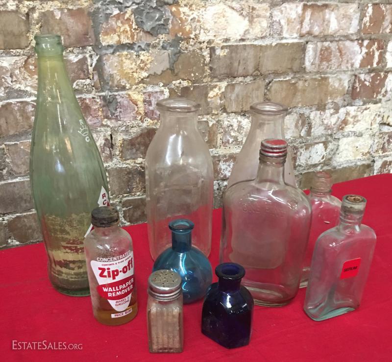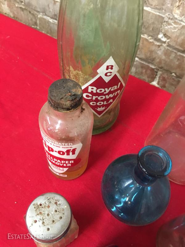 Lot Antique Bottles Colored Glass RC~Cola Milk Bottles