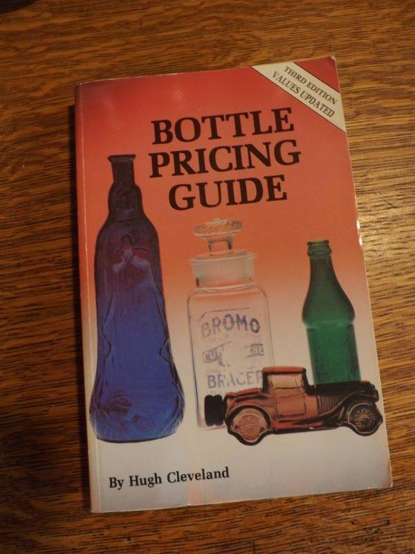 LOT 382 ANTIQUE GLASS DRINK BOTTLES AND BOTTLE PRICING GUIDE BOOK