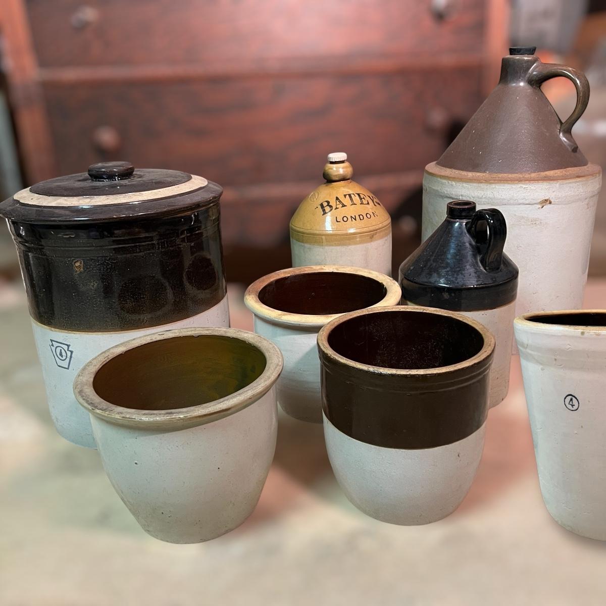 Lot Antique Vintage Crocks - Stoneware, Jugs, Tallest 19"