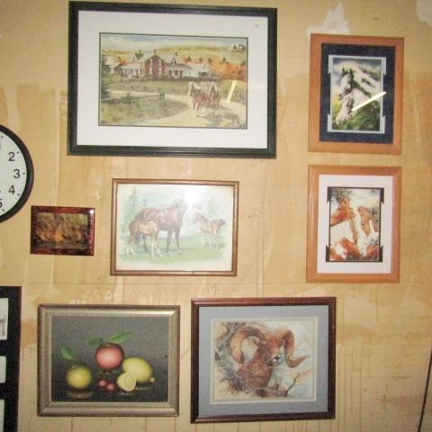 4 PICTURES HAVE HORSES, THERE'S A RAM, FRUIT AND SHOP SIGN
