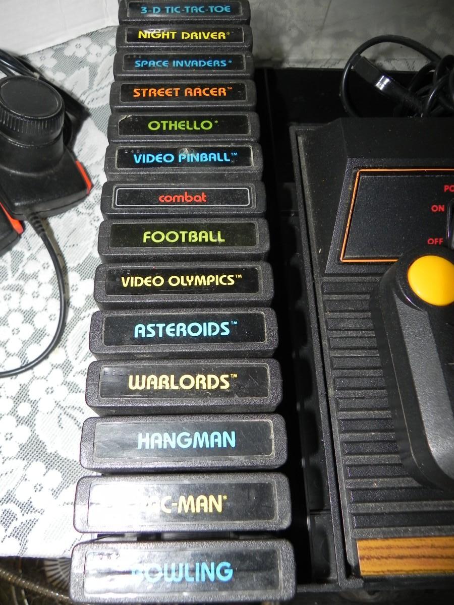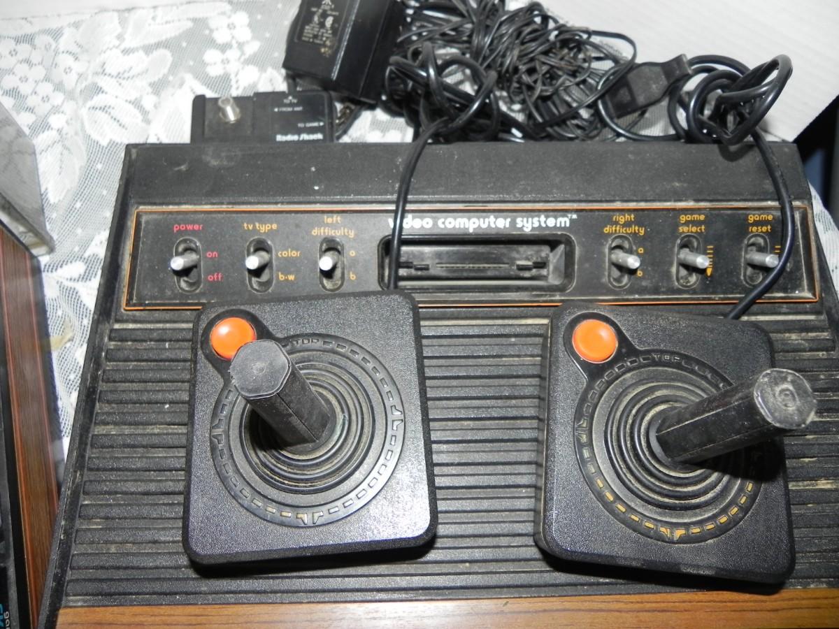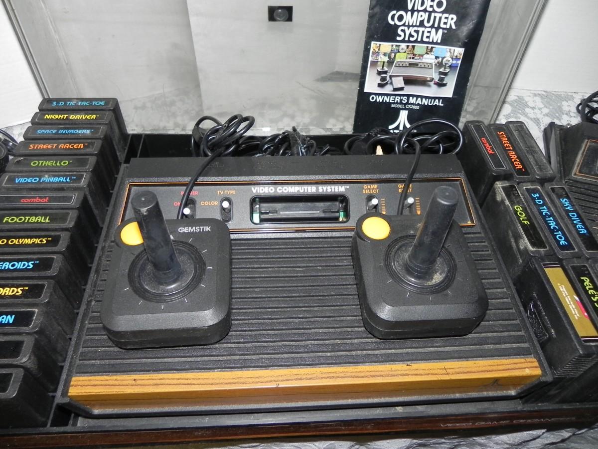 2 ATARI GAME CONSOLES MODEL CX2600 THE ONE COMES IN ITS ORIGINAL VIDEO GAME ORGANIZER WITH JOYSTICKS-PADDLES -GAMES AND WORKS PER SELLER. HAS ALL CORDS. THE SECOND ONE HAS JOYSTICKS AND WIRES BUT DID NOT GET IT WORKING SO (FOR PARTS?).