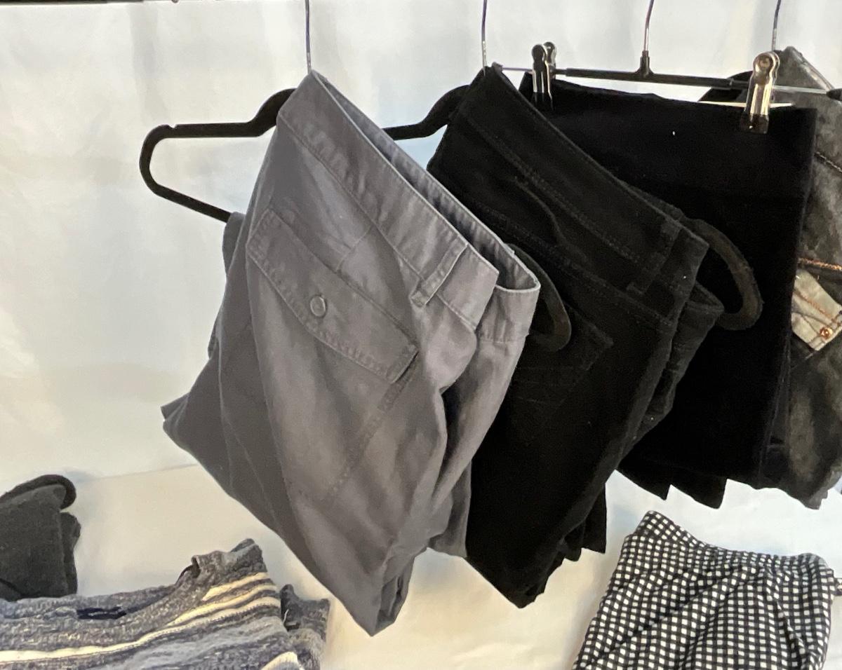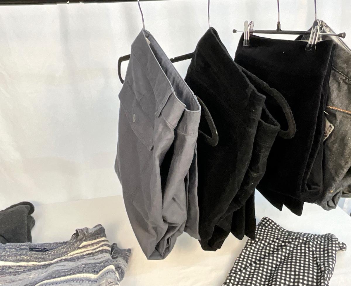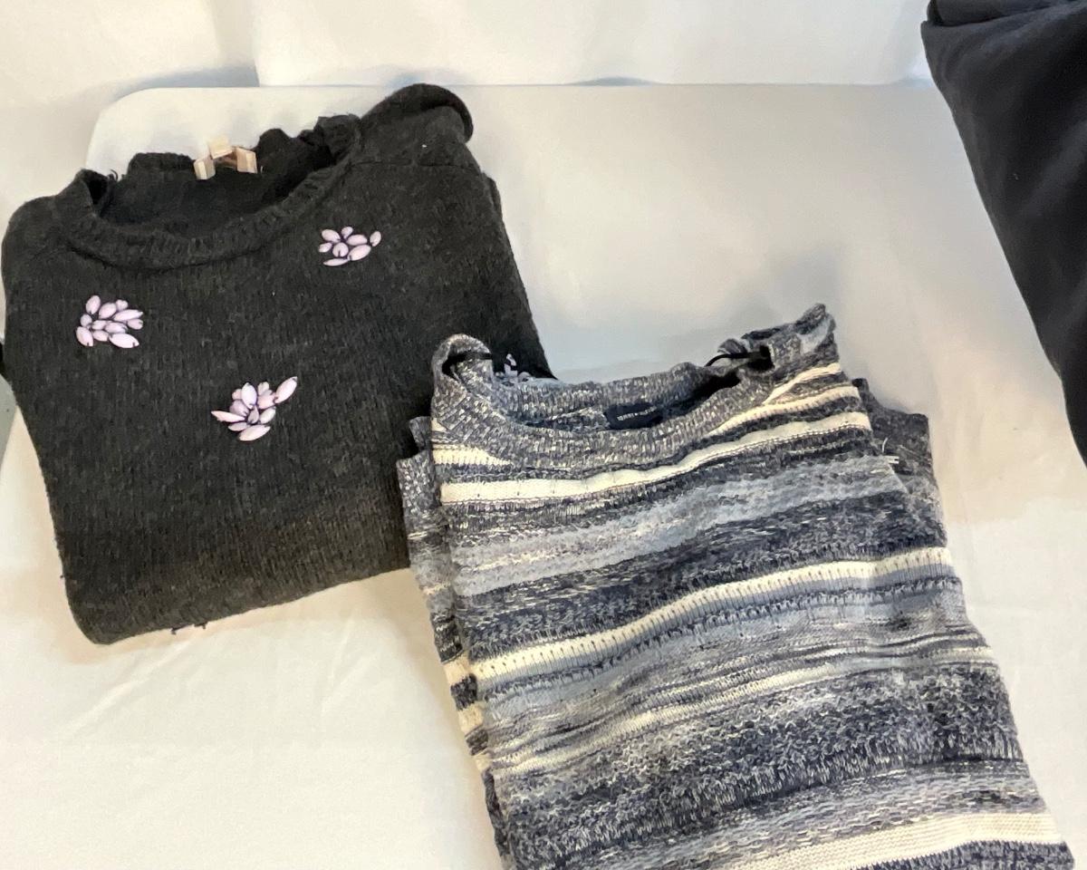 The lot contains pants, sweaters and leggings. Brands included are Loft, Venzi, Simply Vera, Terra & Sky and more.