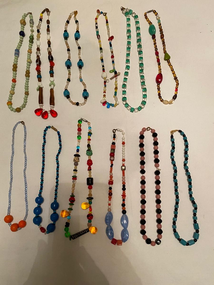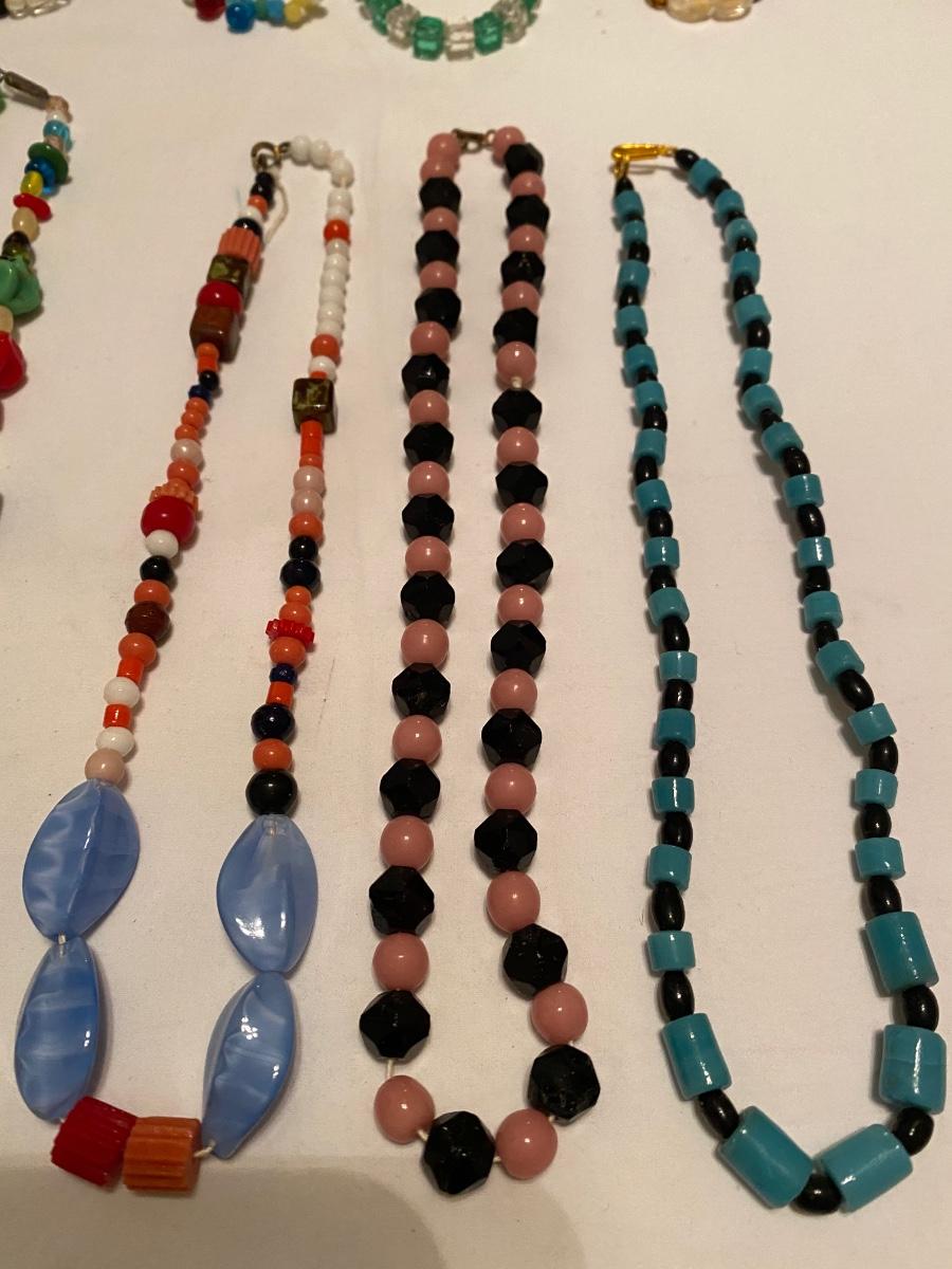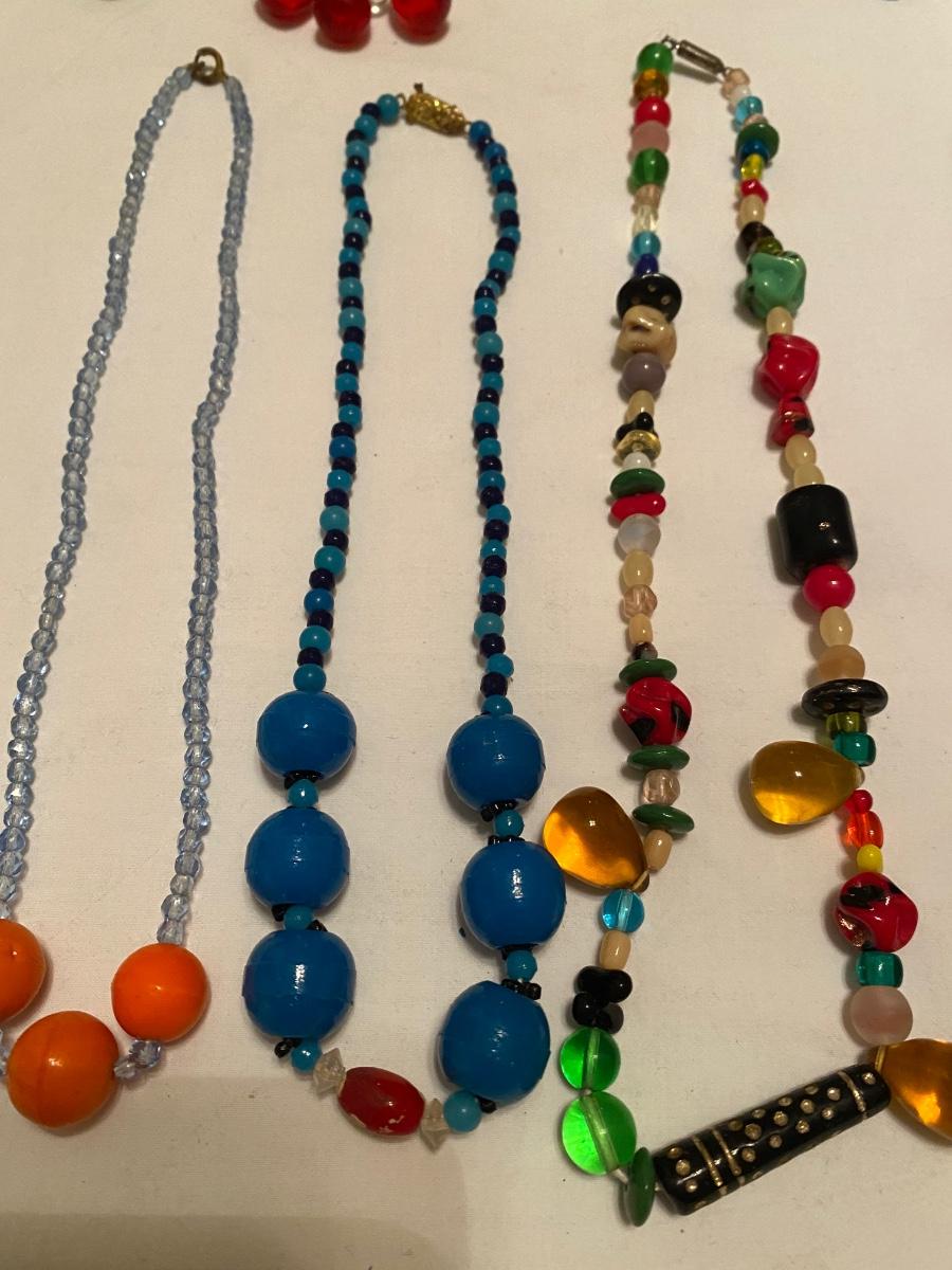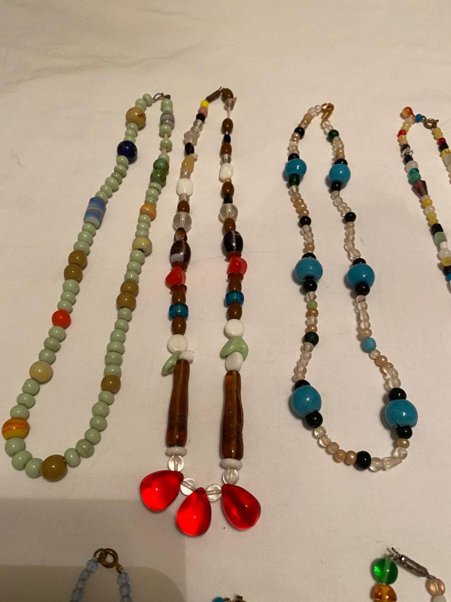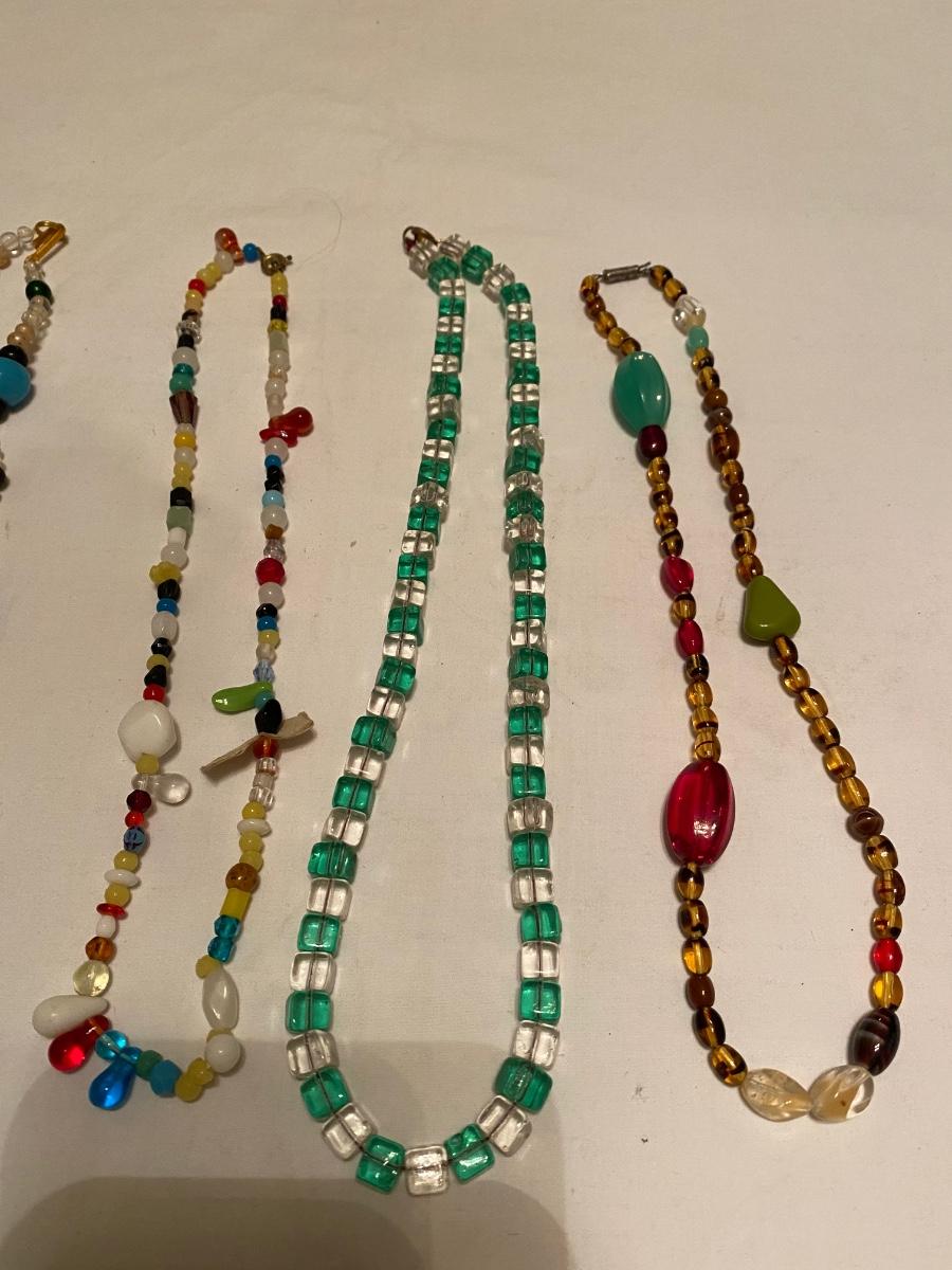 Lot B of one dozen vintage glass Mardi Gras beads. The beads in this lot are all varied. Probably circa 1960’s