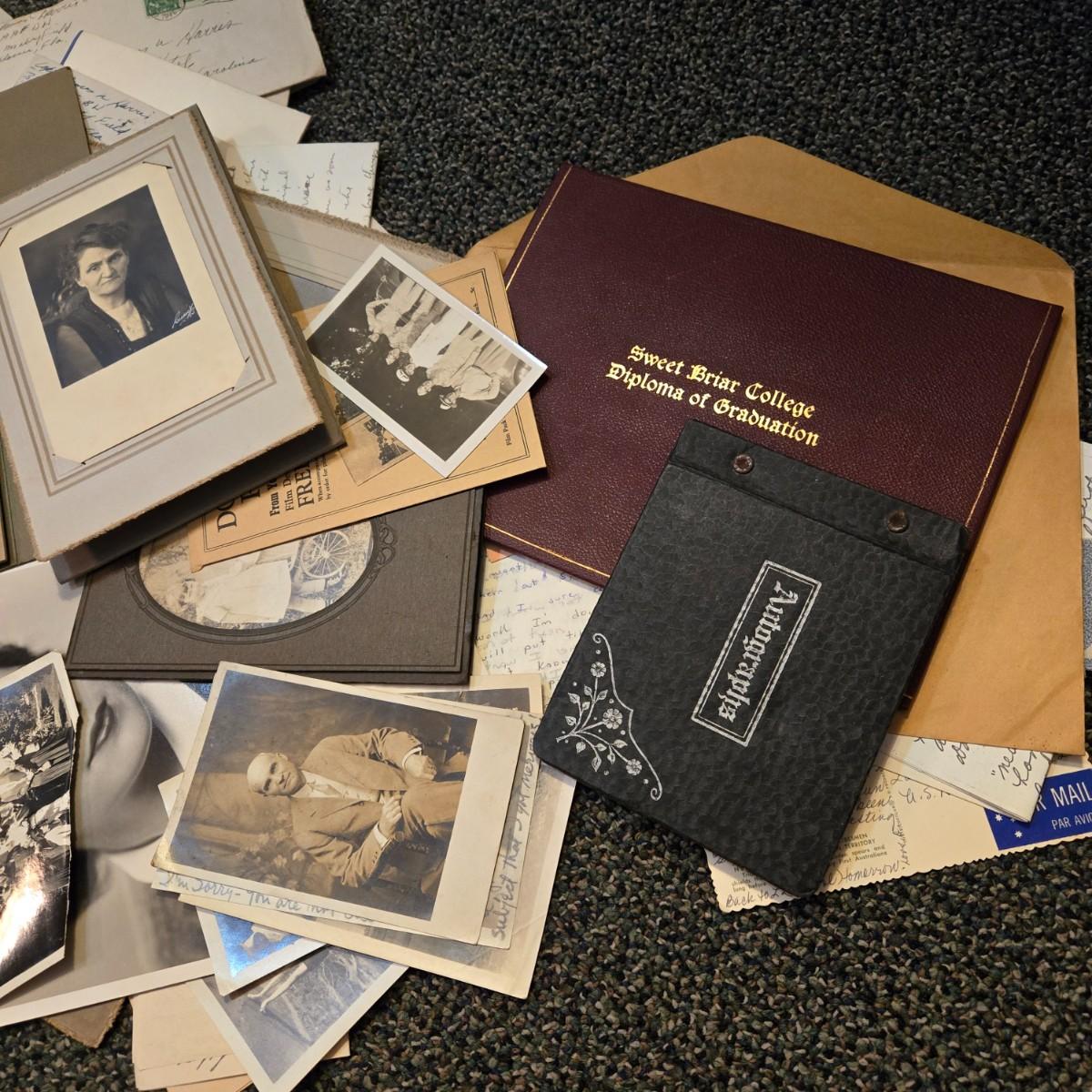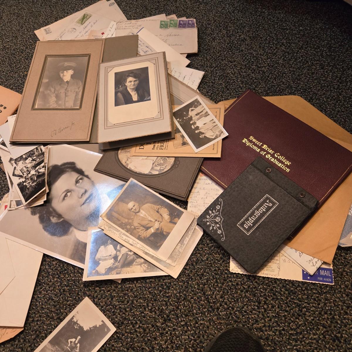 This auction lot is for WWII Ephemera - Lot B. This lot has a collection vintage photos, old letters, a Sweet Briar College Diploma & Commencement Booklet and an Autograph book signed by friends. An interesting lot of old stuff to use and peruse.