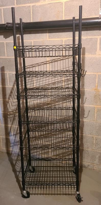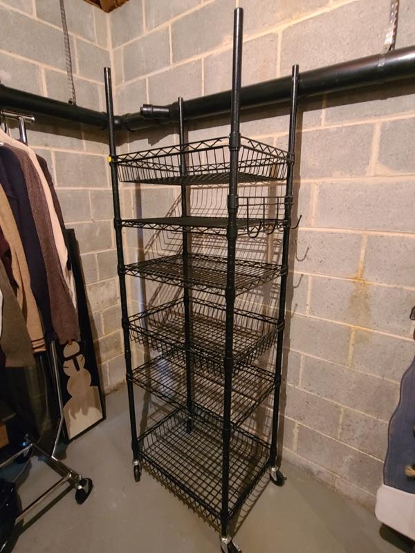 Lot B117 Tall Metal Storage Shelving Unit on Wheels