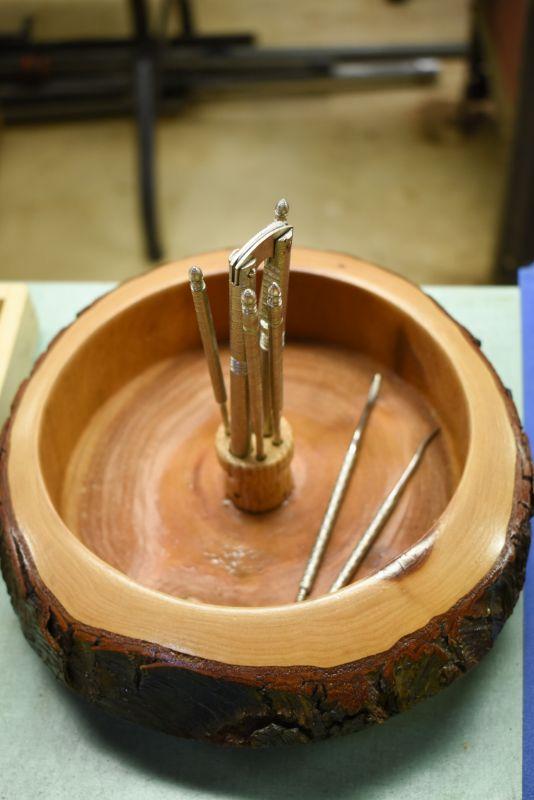 Lot B-157: Handcrafted Nut Bowl with Tools