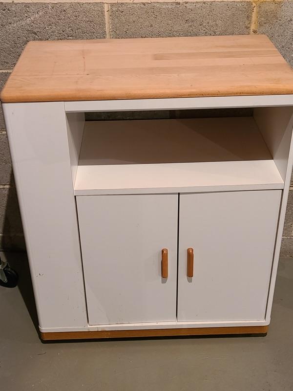 Cart shows some wear. Has storage on side and underneath. Please see pics for condition and sizing.